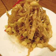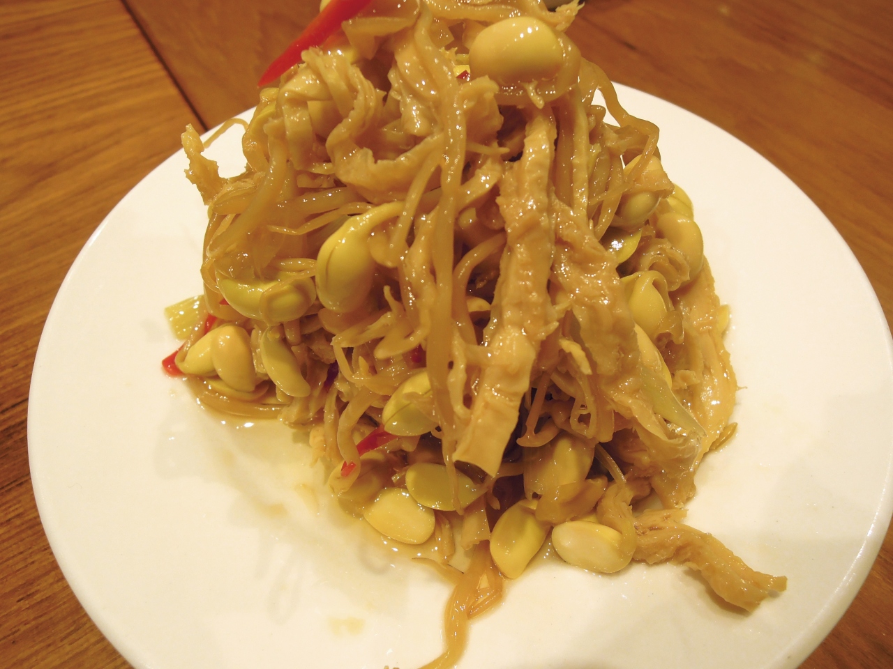 寧式黄芽菜(豆もやしの和え物)は辛いかと思ったら全然辛くなく、ごま油が利いていて食べやすくあっさり美味しいです。