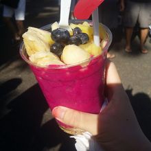 ホットドッグはウインナーが大きくて美味しい~!!しかもここ、ピタヤボウルもあった♪