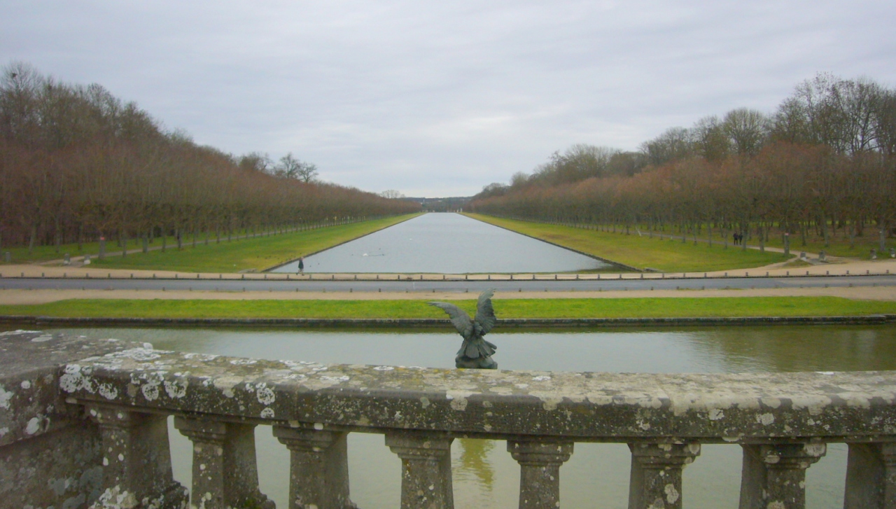 運河のある庭園にはクルマの通る公道が横切っており、