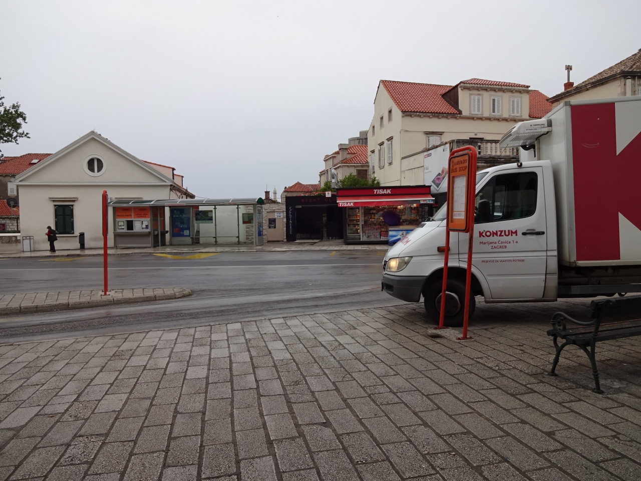 長距離バスターミナルとピレ門間の移動時に路線バスを利用しました。バスチケットは車内で運転手から購入すると15Kn、バス停の近くなどそこら中にあるキオスクで購入すると12Knです。乗車後に裏返しの状態で改札機に差し込むと、一旦飲み込まれて印字されてから出てきます。