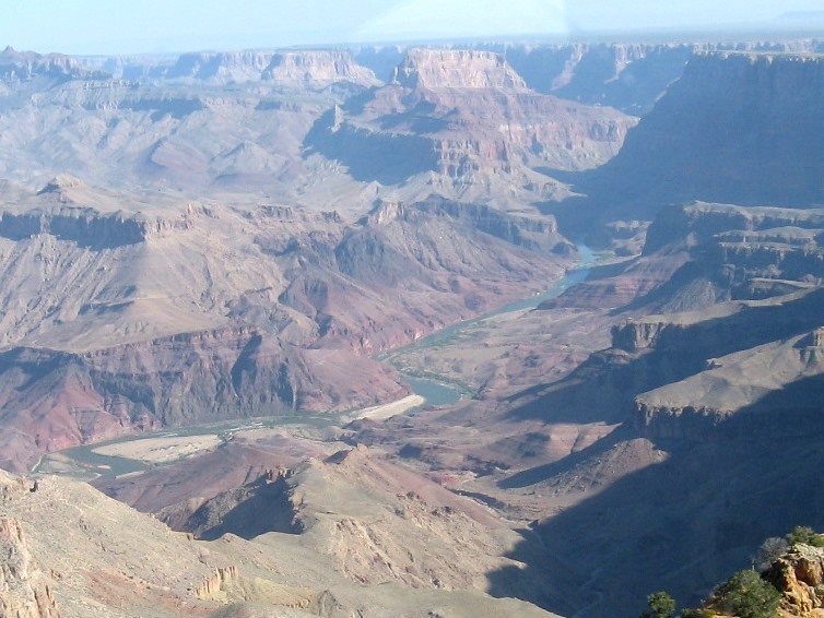 グランド・キャニオンは数億年におよぶコロラド川の浸食と、地層の隆起作用によって出来た大渓谷です。全長460km、深さ1,600mの途方もないスケールの大渓谷で、川をはさんで南側のサウス・リムと北川のノース・リムに分かれます。