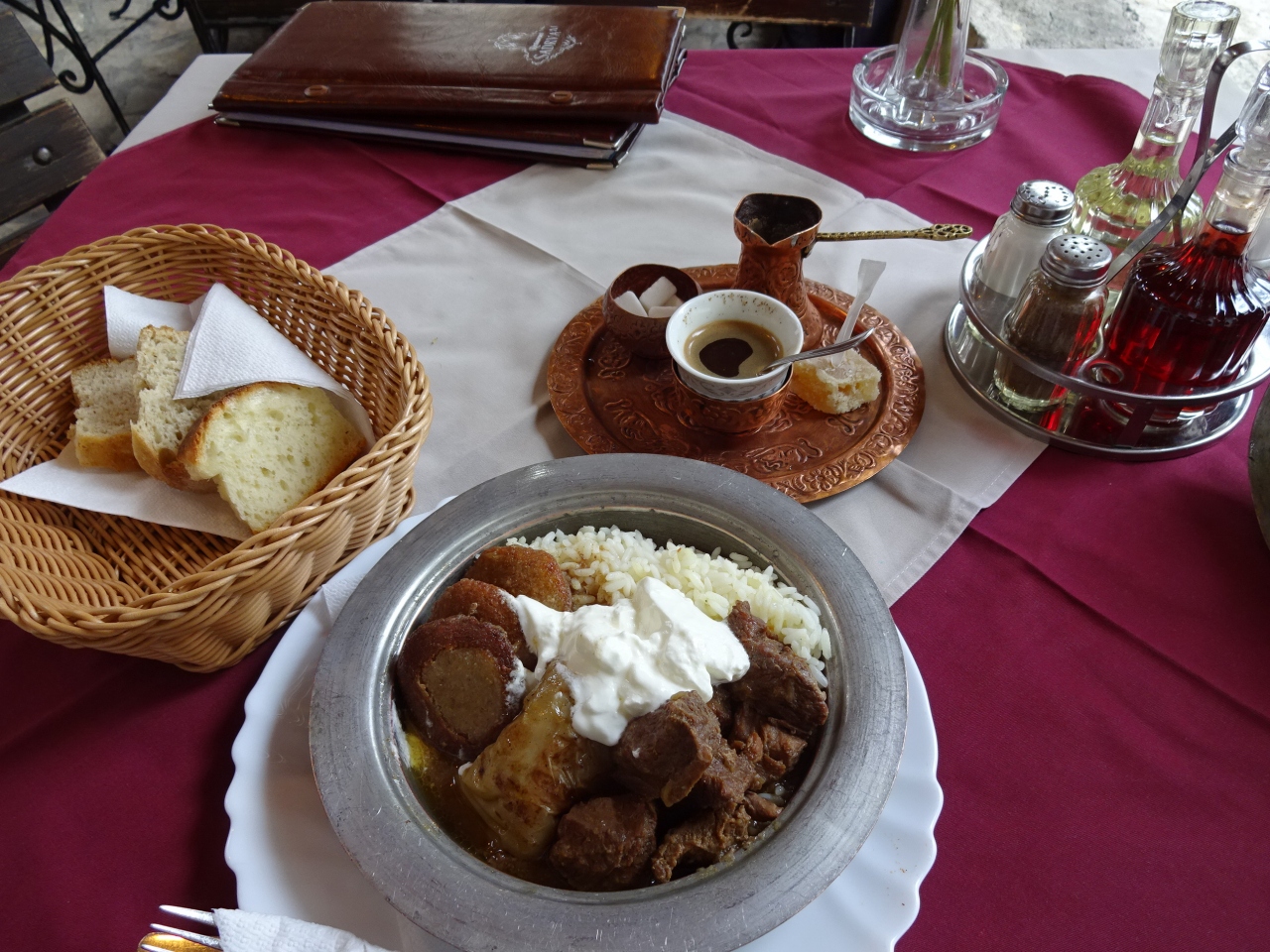 有名店だとは全く知らずに通りすがりに入店しましたが、観光客で一杯の店内は明るくて賑やかで雰囲気が良かったです。高級そうなお店に見えましたがメニューを見ると安くてびっくり!色々なボスニア料理がたったの4ユーロで楽しめます。