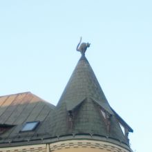 リーヴ広場近くの北側に猫の家があります。昔、猫の家に裕福なラトヴィア商人が住んでいたそうで、ラトビア人というだけで、ドイツ人がギルドを拒否したことから、怒って、大ギルド会館に尻をむける、猫を屋根に付けて答えたようです。