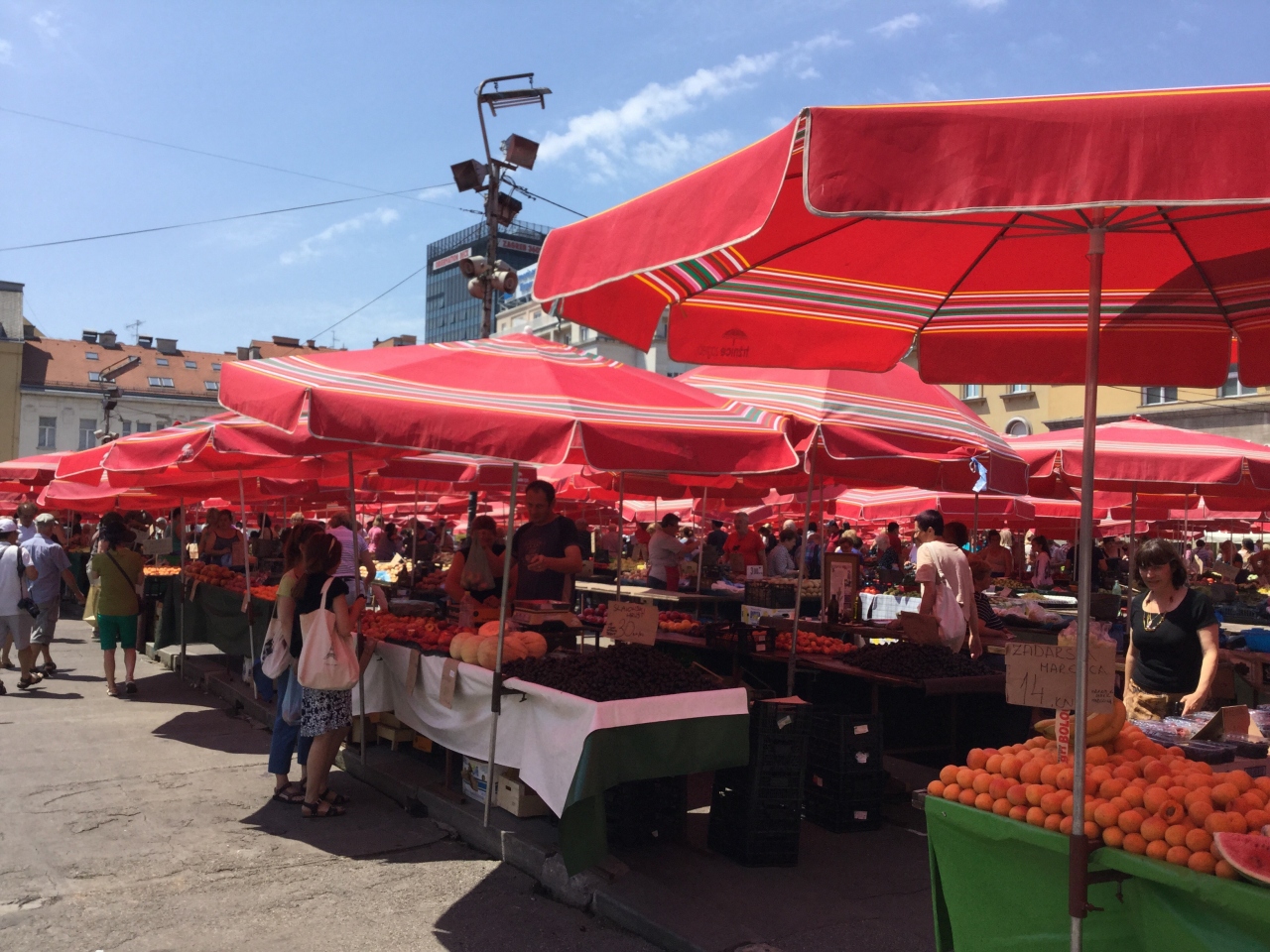 イェラチッチ広場から階段を上ってすぐのところに広がる市場です。