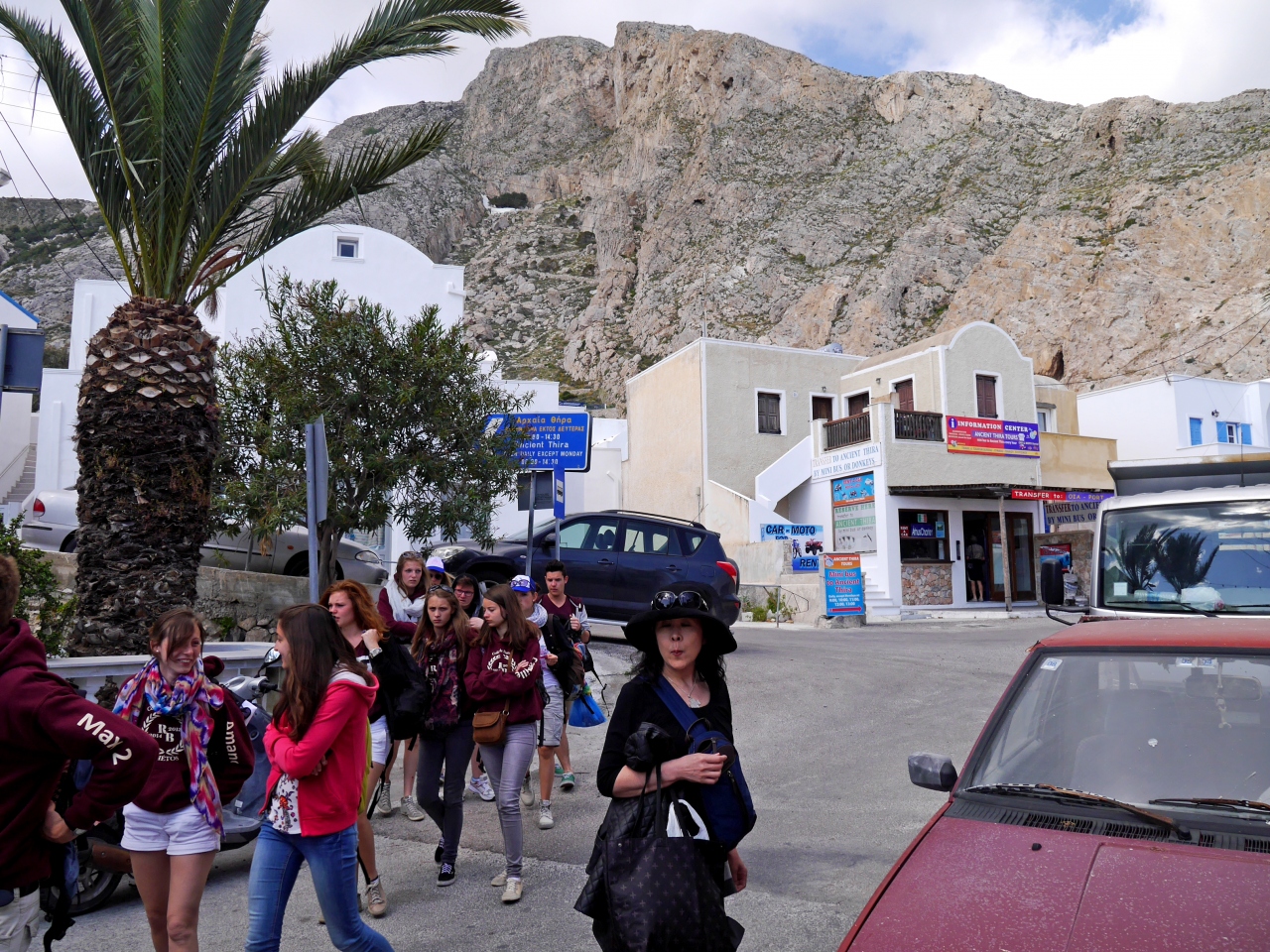 ティラ遺跡に行くには、一般の観光客は道路の整備されたカマリより、車などで遺跡の麓まで行き、そこから歩いて登っていきます。ペリッサからは山道で徒歩だけしか手段はありません。