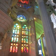 高い天井、日差しの差し込んだステンドガラス。