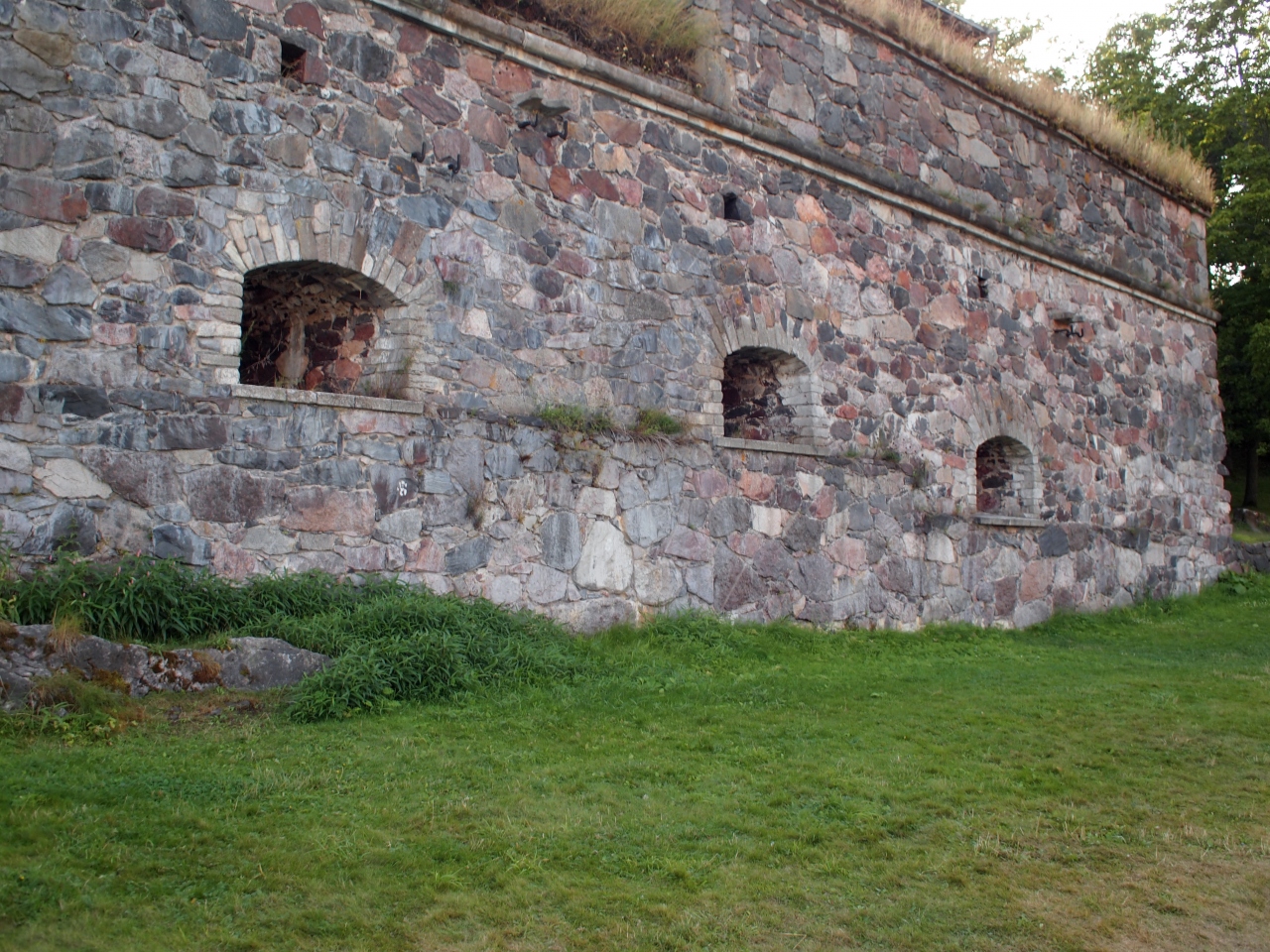 ヘルシンキのエテラ港から船で渡る要塞島です。今は緑が多く、鳥たちが遊んでいる平和な島ですが、島の岸辺に沿って堅牢な城壁が築かれ、大砲や銃を撃つための狭間もあります。今はピクニックに訪れる人が多い平和な島ですが、戦争の痕跡が平和の大切さを訴えていました。