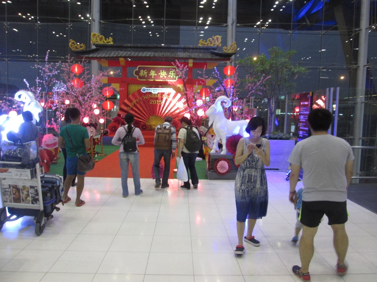 2月上旬にスワンナプーム空港を利用すると出発階には赤い飾りが付けられて旧正月祝いのセールを行っていました。バンコク市民だけでなく、中国系の観光客が足を止めて記念撮影をしていました。バンコクの新年はお祭りの雰囲気はありませんでしたが、旧正月の方が盛り上がっている雰囲気がありました。