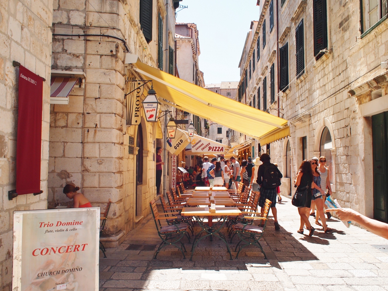 ドブロヴニクの一番の目抜き通りで、多くの人々で賑わっています。石畳は何百年もの間人々が歩き続けてきたために、とてもつるつるで美しく光っています。短い通りですが、通りから伸びる路地にはお洒落なレストランやカフェなどがあって、散策するのもとても楽しいです。