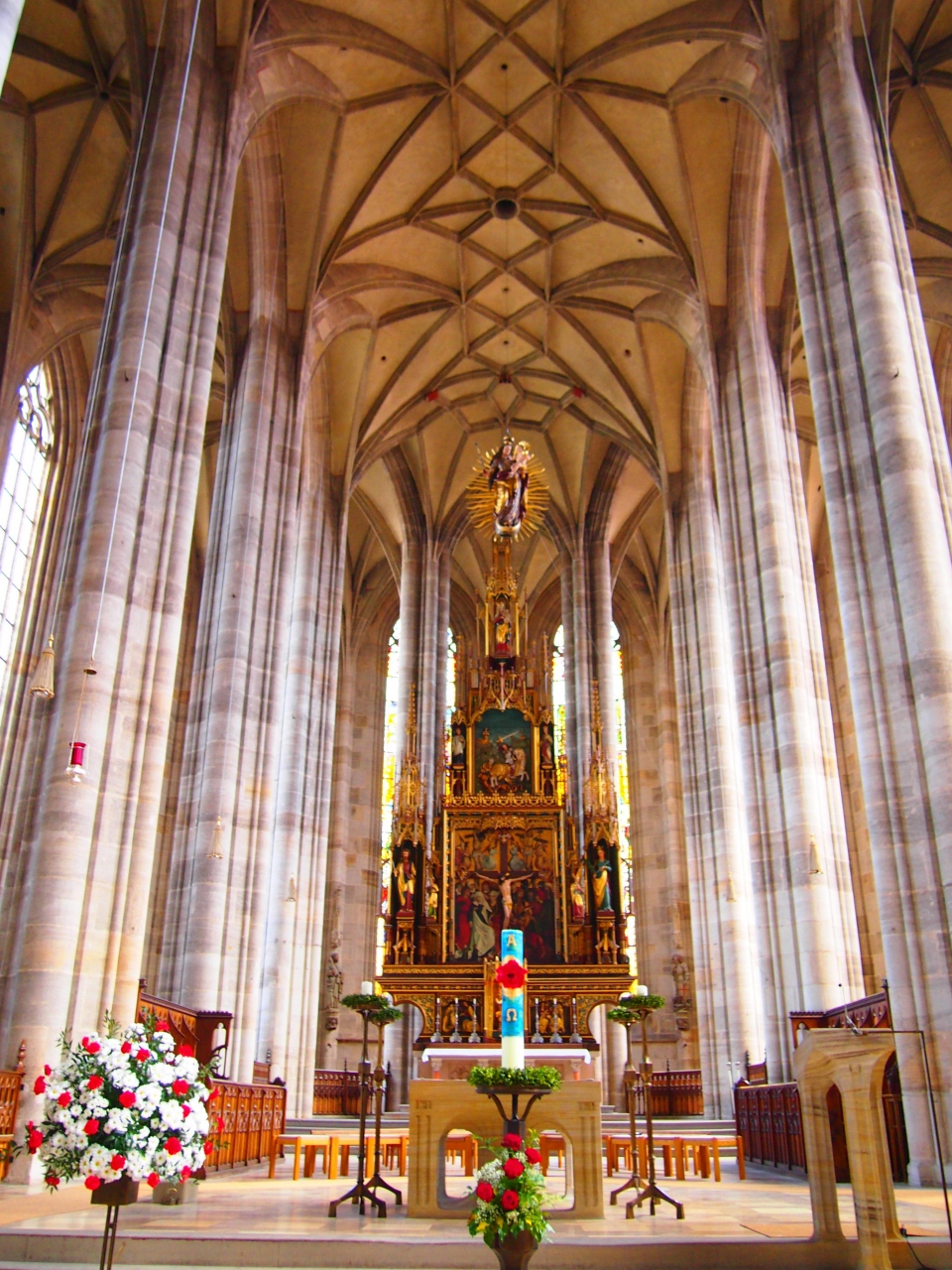 私たちがバスで訪れた日は、ディンケルスビュールでの停車時間は35分間でしたが、それでも時間的にはヨユーでした! 塔の展望台に上る時間は最初からなかったけど(この塔はどちらにしても公開されてる曜日が限定されてます)、教会内部を見学しました。 荘厳な雰囲気を感じます。 パイプオルガンも立派でした!