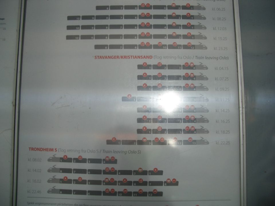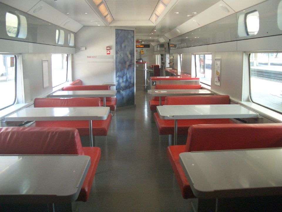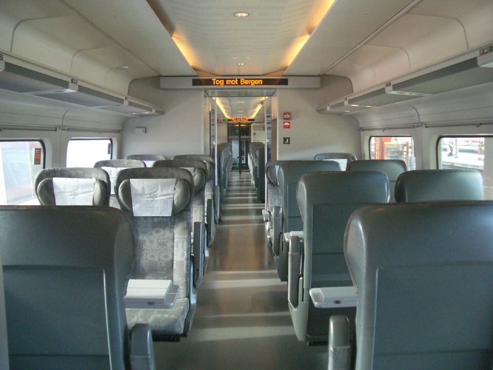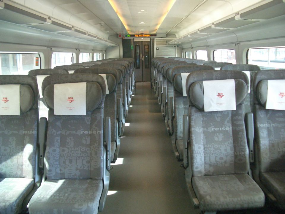 Oslo−Bergenの電車は、1号車がNSB KOMFORT、2・3号車がファミリーシート、5号車が食堂車、その他がStandard seatです。