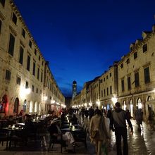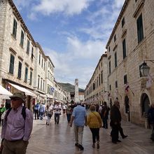 ピレ門から旧市街に入って目の前に延びる、ドブロブニク旧市街のメインストリートです。200m程の通り沿いには土産物屋、路地にはレストランが並んでいます。