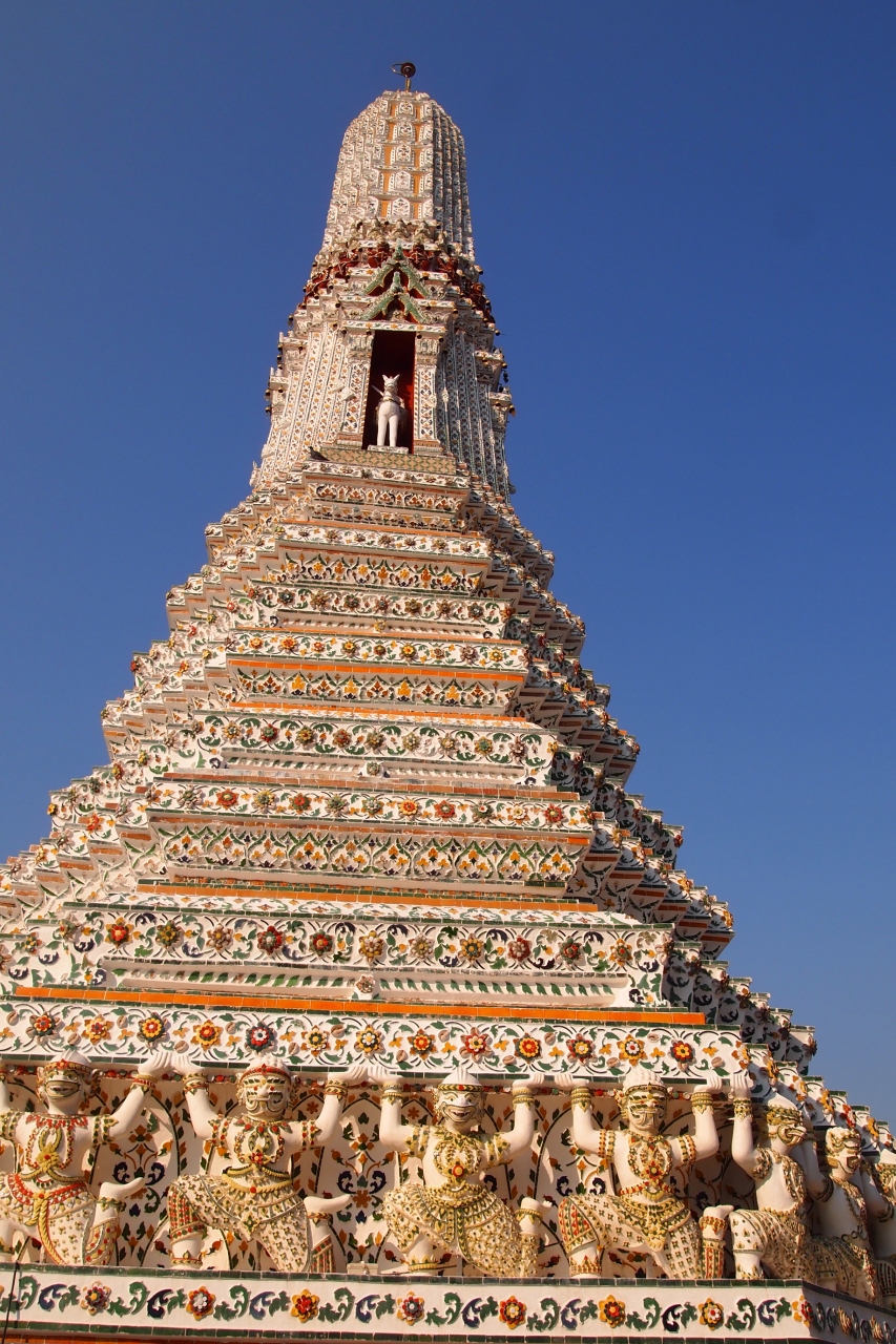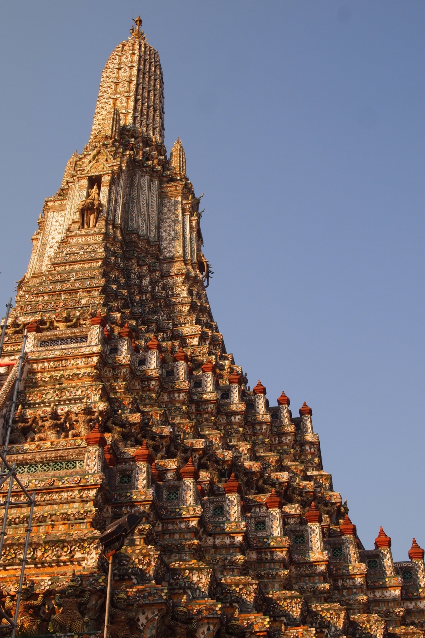 仏塔には中国陶器で作られたタイルが埋め尽くされており、カラフルで華やかなデザインは非常に魅力的。近くで見るのと遠くから見るのとでこんなに印象が変わった仏塔も初めてでした。