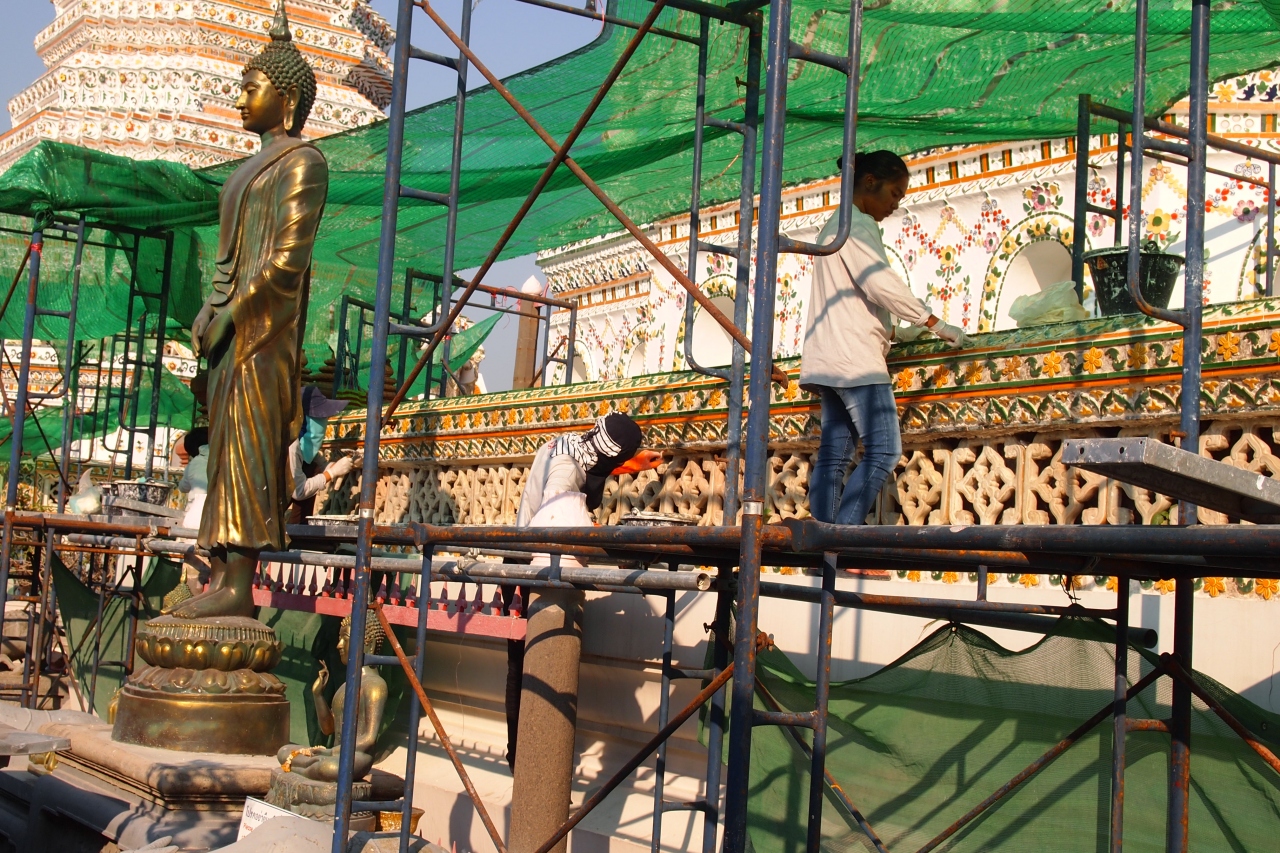 近くで日本で言う宮大工さん達が作業をしているのですが、陶器をばりんばりん割りながら修復している姿は斬新でした。