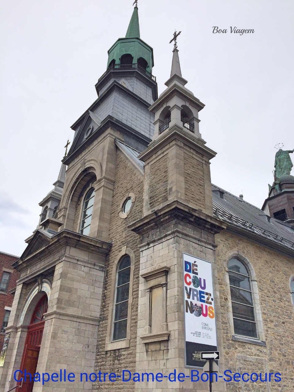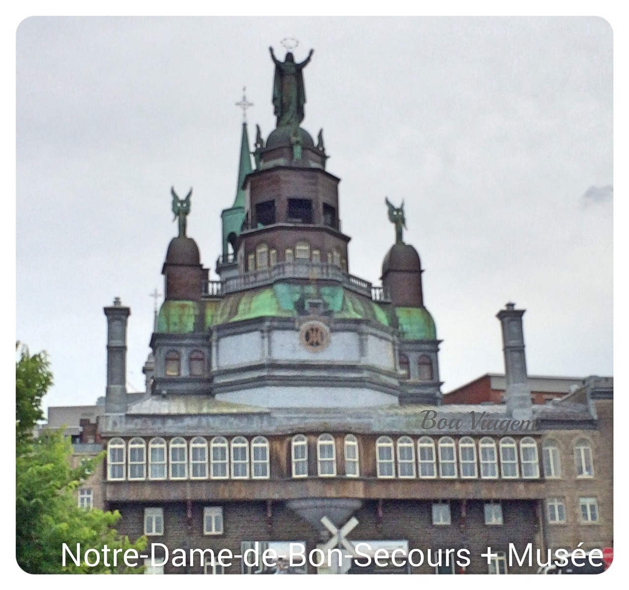 仏語で、Chapelle Notre-Dame-de-Bon-Secours ノートルダム ドゥ ボン スクールという礼拝堂・教会です。正面は、rue Bonsecours ボン スクール 通りに面した三角屋根に尖塔の、かつては木造の礼拝堂が今は石造りの教会になっています。しかし、港側から見るとゴツい暗い色の丸みを帯びた建造物になっています。付属博物館になっています。とても同じものとは思えません!? 折しもJune Bride 6月は結婚シーズンで、挙式のために中には入れてもらえませんでした。<br />内部はとても美しいと写真で見たことがあったので、残念でした。