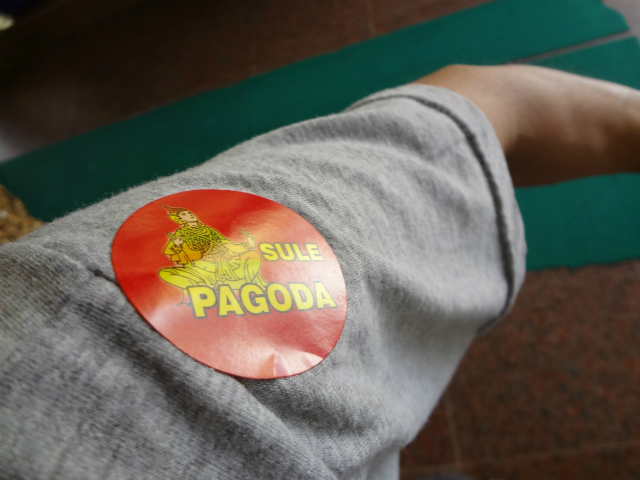 パゴダの東西南北等々、入り口が多数あって、入場料を支払うと赤色の丸いシールを張ってくれます。