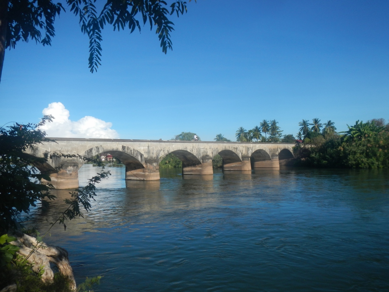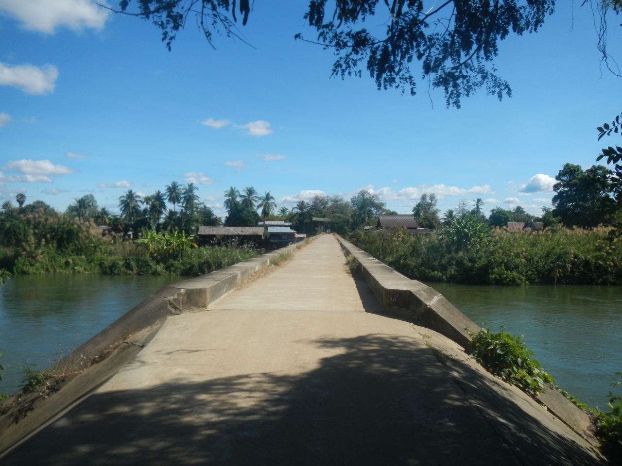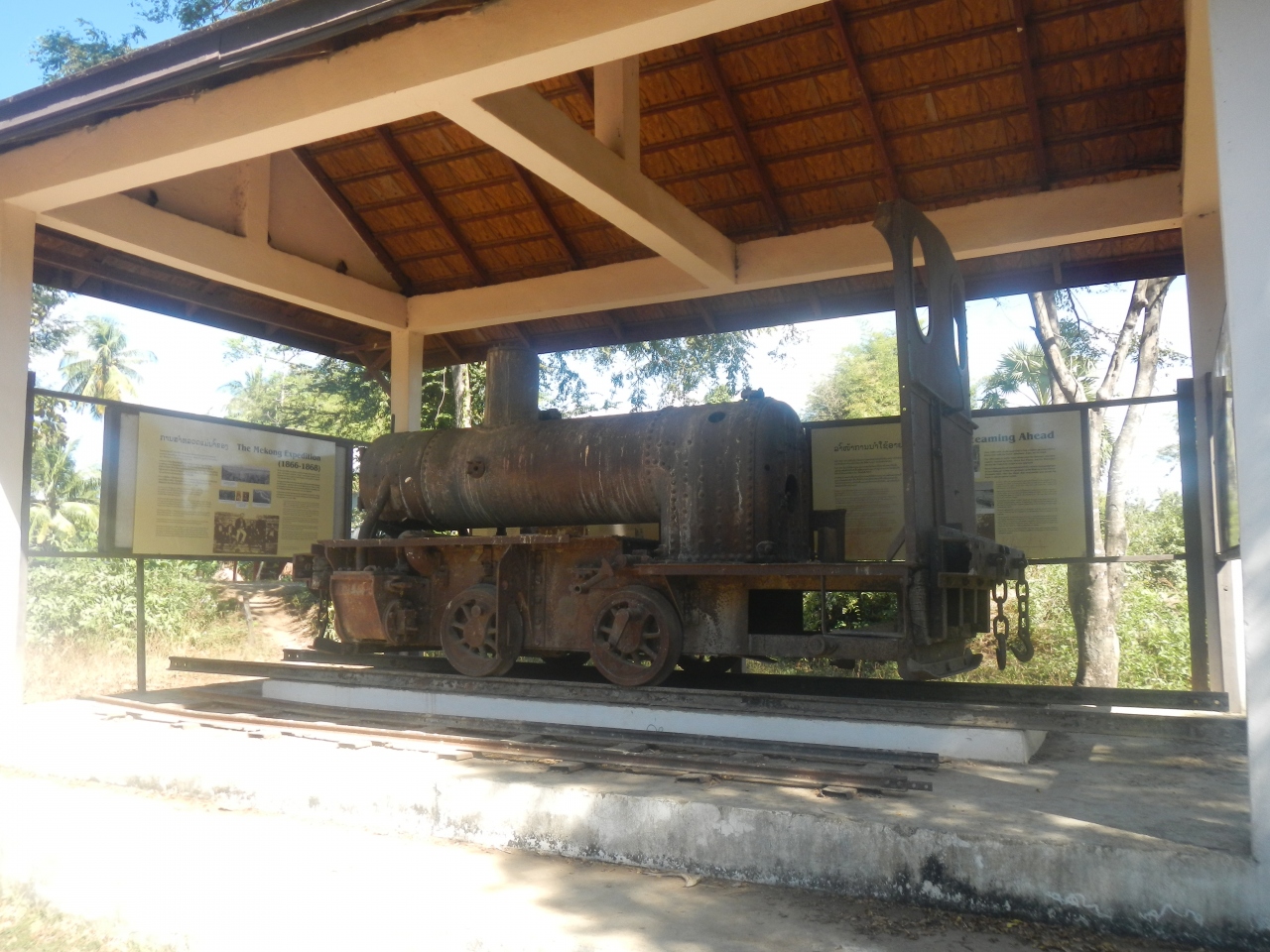 5年ぶりにデット島にに泊まった。島を散歩し、フランス時代の蒸気機関車と鉄道橋がどうなっているか気になったので見に来た。蒸気機関車には保存用に屋根がかけられ、説明板が付けられていた。橋は特に変わった様子もなく、生活にための道路橋として使われていた。