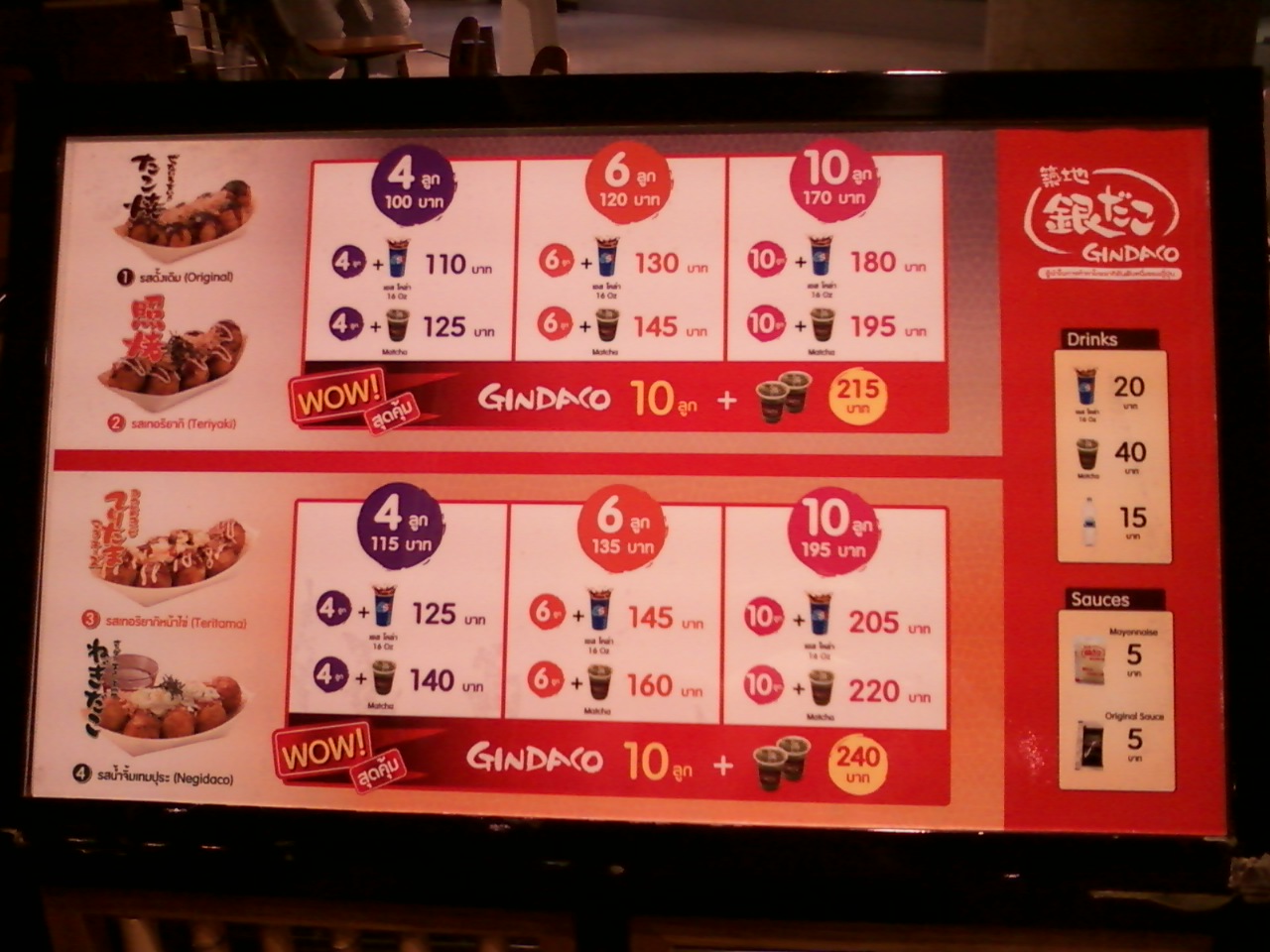 約一年ぶりに訪れましたこの築地 銀だこは築地市場発祥のたこ焼きチェーンで、日本にも多くの支店があります。ロケーション的にはラチャダー地区と少し不利なところにありますが、中々健闘しているようで地元タイ人にも人気のようです。しかし支店を増やせてないということは、苦戦しているのではないかとも思われます。今回も食べてはみましたが、大阪出身の私としましては・・・・・?の味でした。