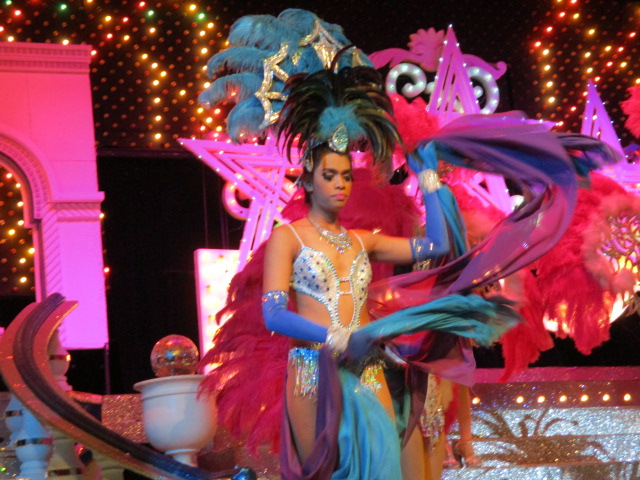 ニューハーフショーのカリプソは見てないのですが、こちらは面白かったです、ダンサーは大柄。トップを務める人達は綺麗でした。若い人達は男役が多くて可愛いジャニーズ系。日本の松田聖子の曲、都はるみの曲、中国の曲は言葉はわからないですが、スピード感あり、日本のニューハーフショーとは違った趣でした。
