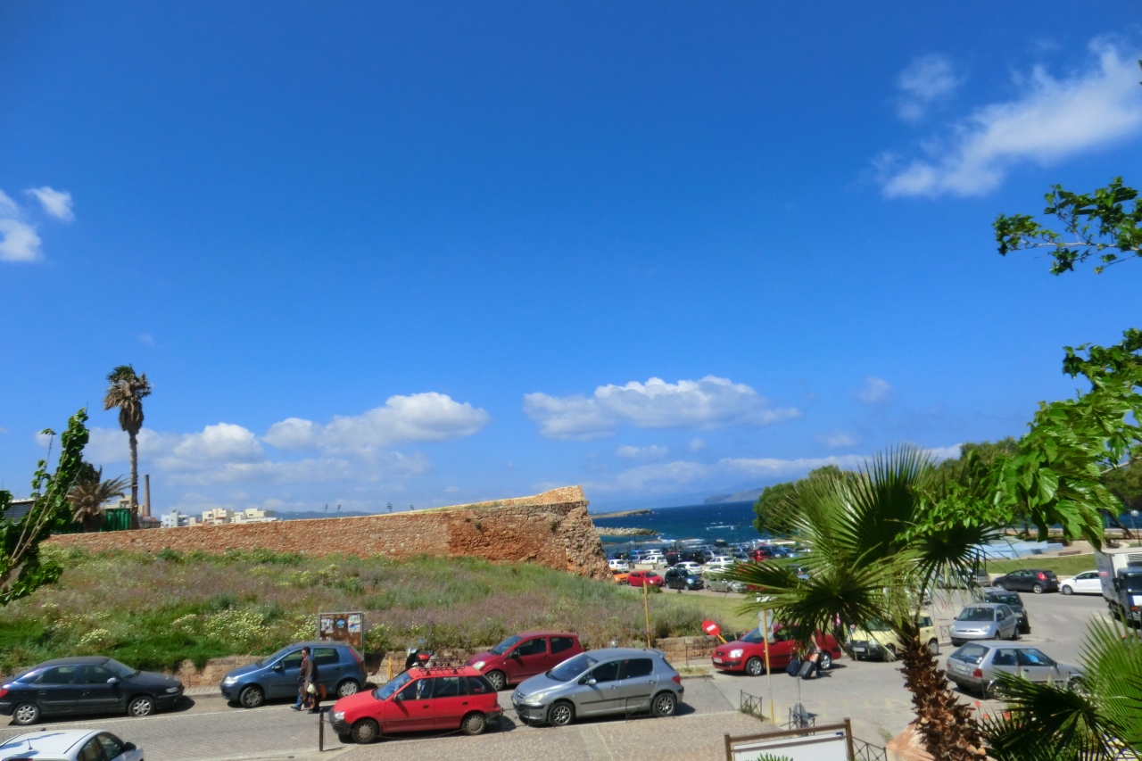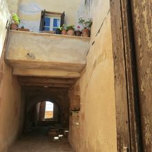 ハニアの海辺から、町に入る通り沿いに黄色い建物が、かわいらしく建っています。