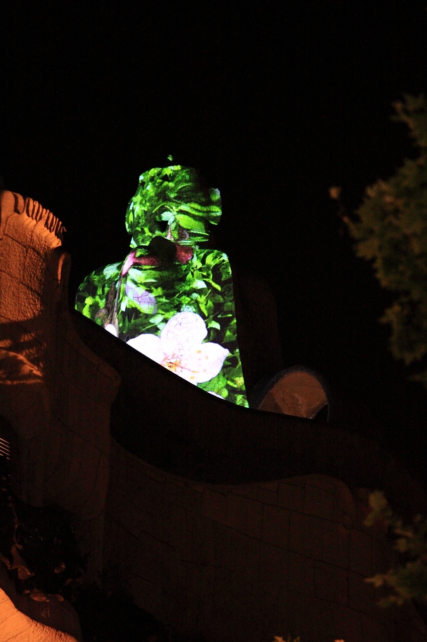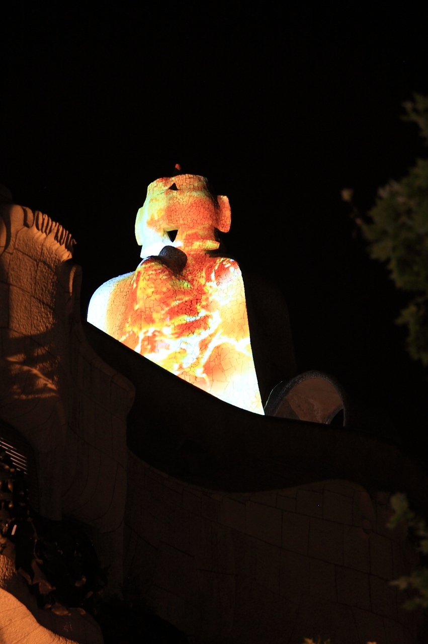 カサ・ミラの屋上で夏場はミュージックナイトや、屋上にある煙突や十字架に繰り広げられるプロジェクション・マッピングのショーを見ることができる。