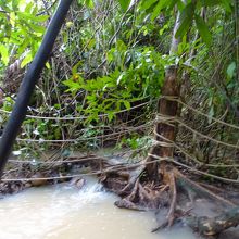 ドライバーがしきりにノーホットと言っていたので、雨のせいで熱くないだと思っていたが、泥川になっていた。昨日からの大雨のせいだ。