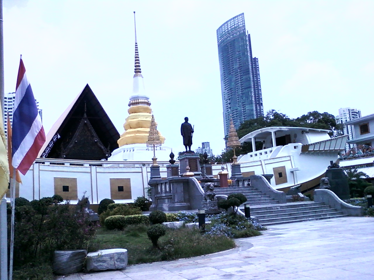 約一年ぶりに訪れたこのワット ヤーンナーワー (ワットヤンナワー)は観光客に人気のようで、観光バスで乗りつける団体旅行者の姿が多くみられました。また境内には画像のように日本人ゆかりの施設もあり、時間があれば日本語での説明を受けられるそうです。また小鳥などを逃がしてやるタンブンは、チャオプラヤー河沿いで行えます。
