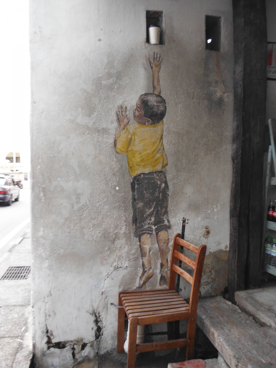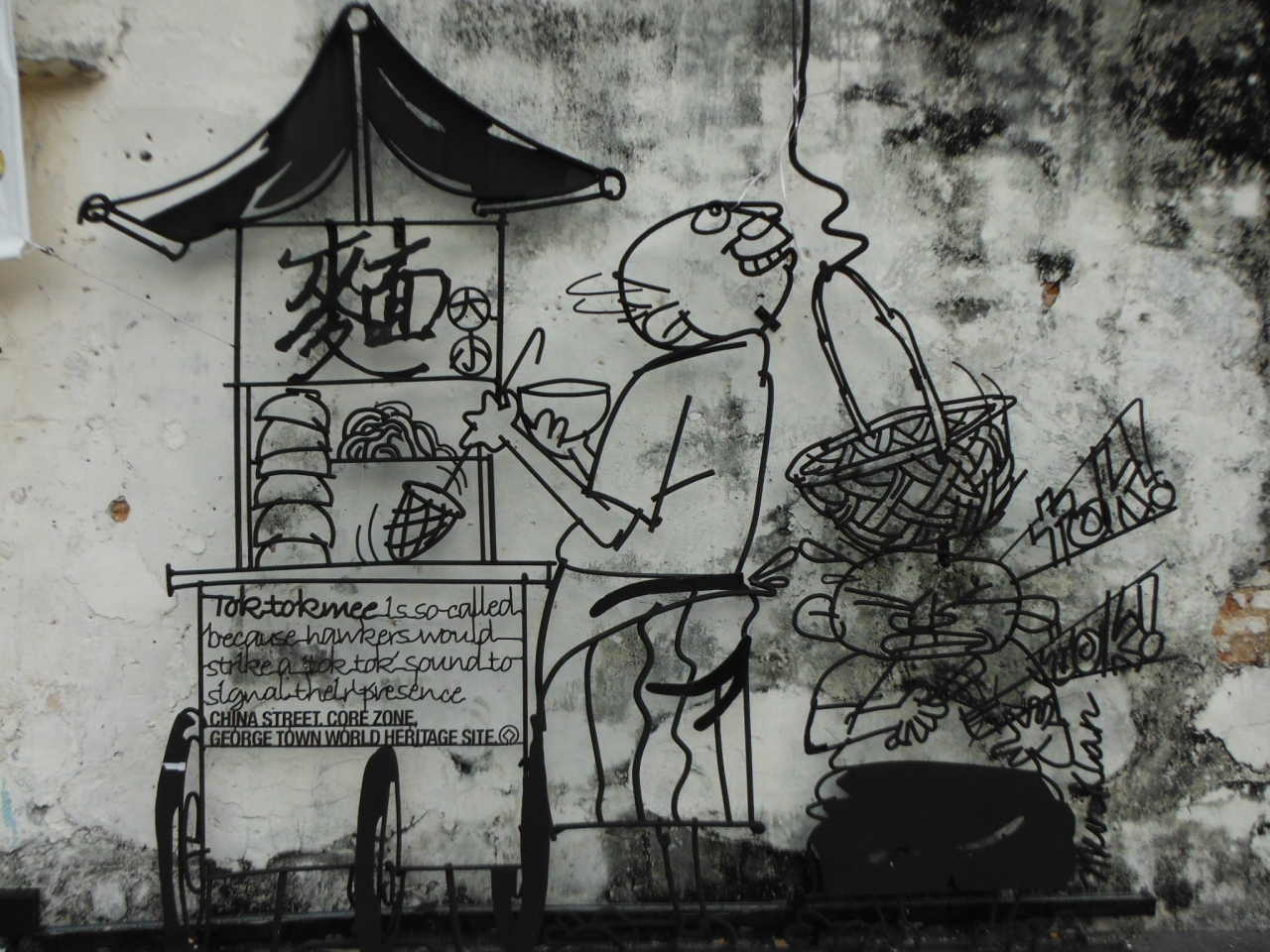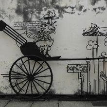 2012年のジョージタウン·フェスティバルのために、街の至る所に壁画や針金アートが作られたようで、世界遺産の街並みに溶け込んでいて、面白いです☆