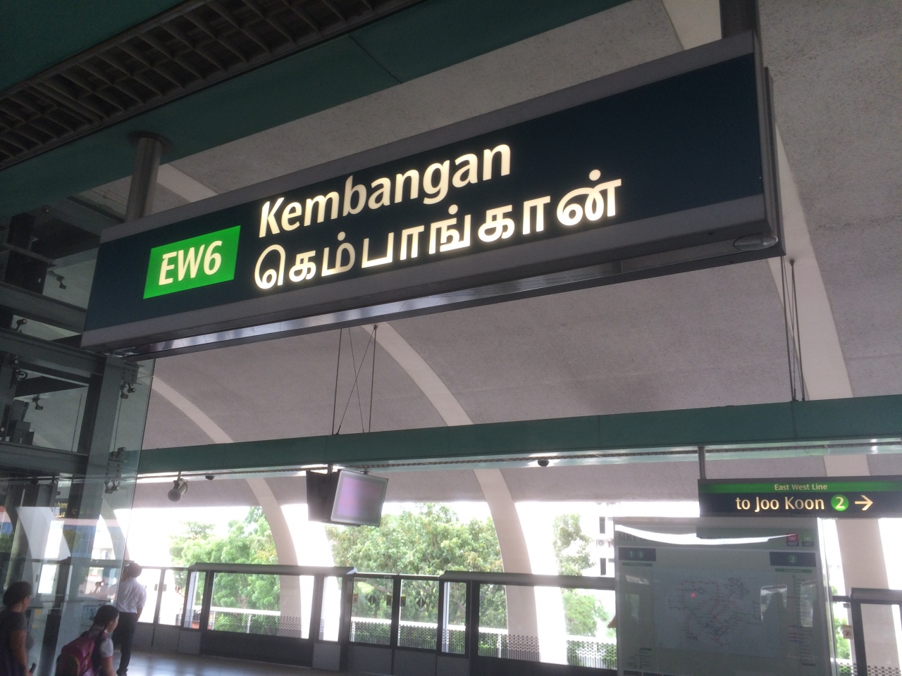 島式のホームが1面で、2つの線路がある、MRT東西線の高架駅です。