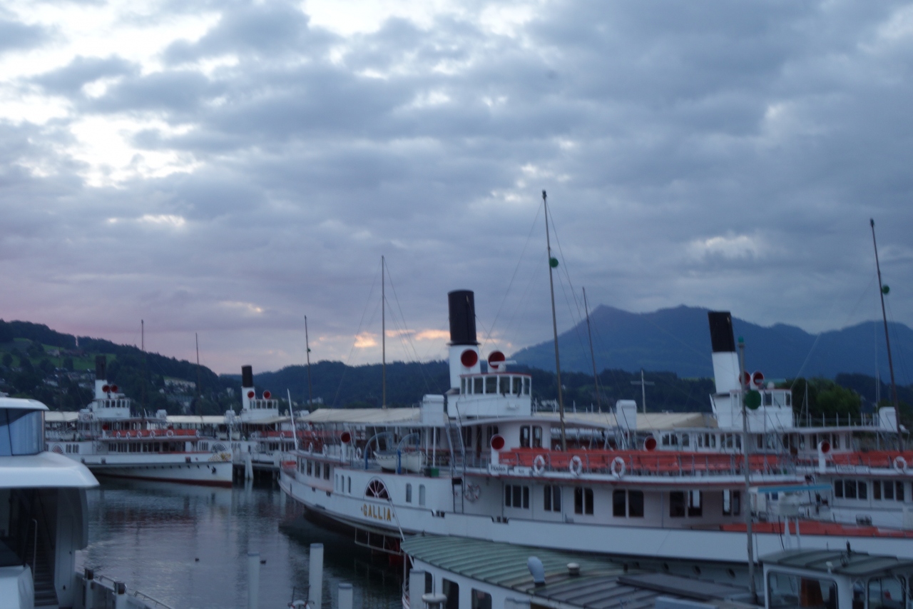 ルツェルンの自然を楽しむ方法のひとつにルツェルン湖の遊覧船があげられると思います。夏だと9時過ぎでも明るいですし、7時頃でも遊覧船(と思われる船)が行きかってました。早朝の湖には数多くの遊覧船が停泊してして、その人気を思いました。