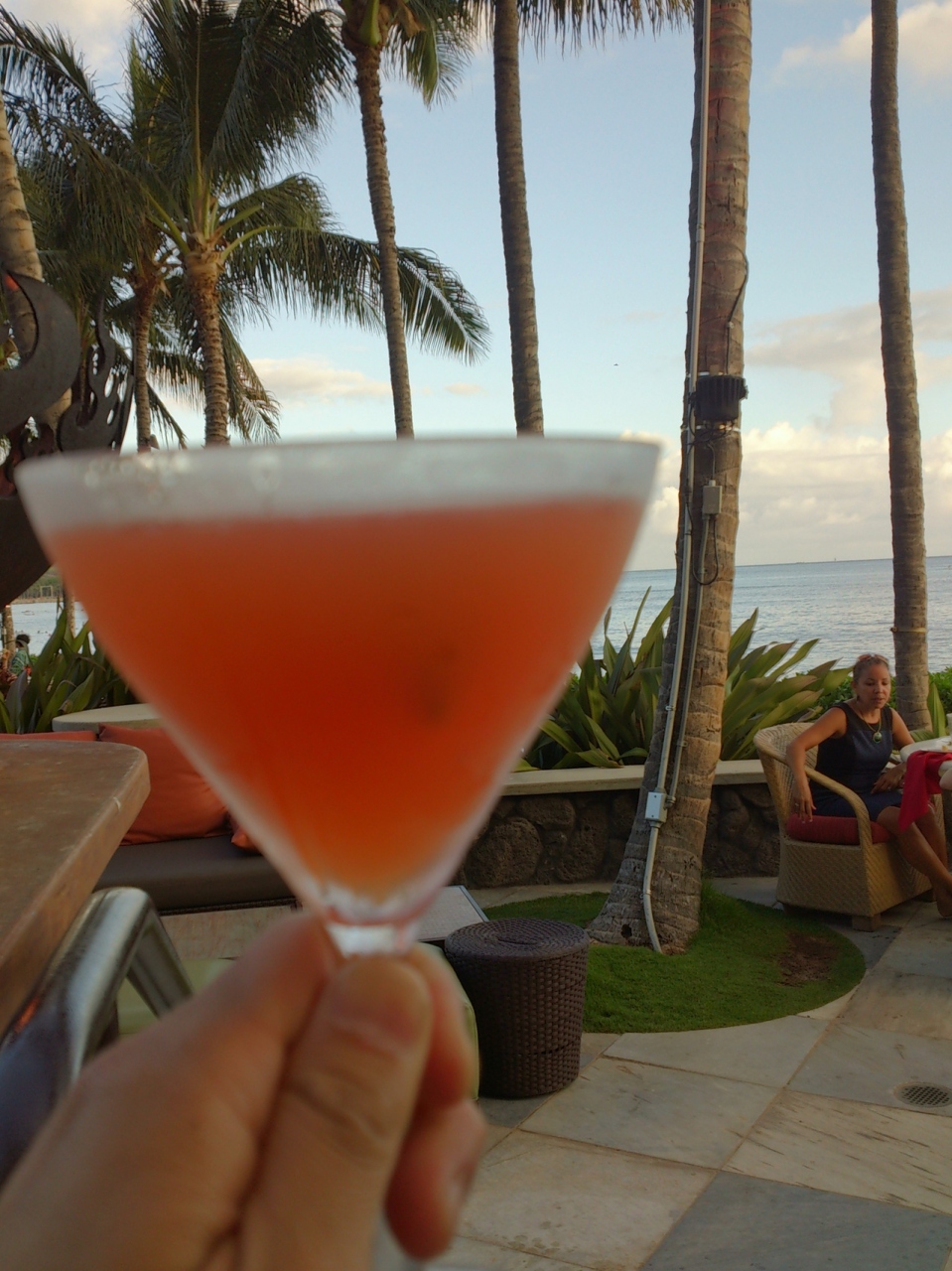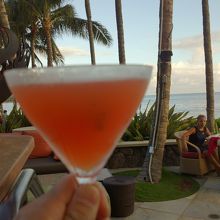 一段上からワイキキビーチからダイアモンドヘッドを眺めながらのカクテルは格別です。