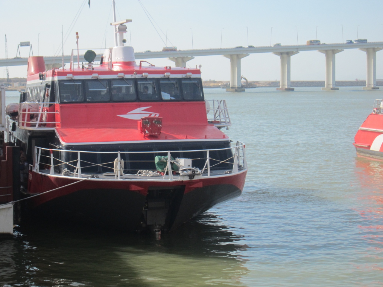 中環の港澳碼頭から澳門へ行くのにターボジェットに乗りました。MTRの一番電車で出かけて港澳碼頭には朝6:30に到着し、早朝だったためチケットも並ぶことなくすぐに買え、次便の7:00(昼行の初便)に乗ることができました。夜間、休日は運賃が増額されるということで、日曜日だったため休日料金となりました(HKD177)。クレジットカードも使えます。澳門外港へは昼間(7:00~)は15分毎に出ており、天気も良く海も穏やかだったためそれほど揺れることもなく、1時間ほどで澳門に到着しました。予約なしで空席待ちをしたくない場合は早朝に行くと良いと思います。