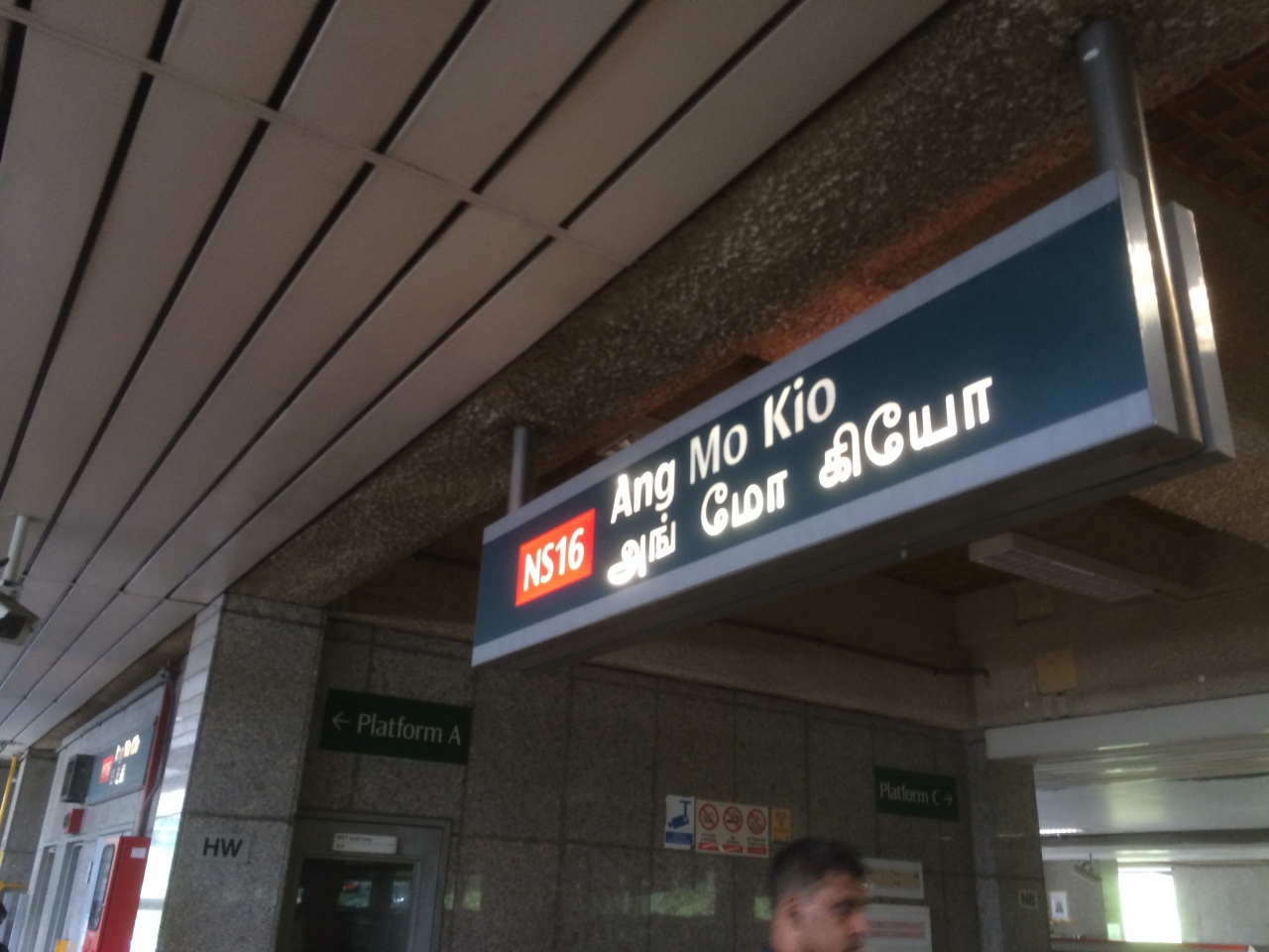 島式のホームが2面で、3つの線路がある、MRT南北線の高架駅です。