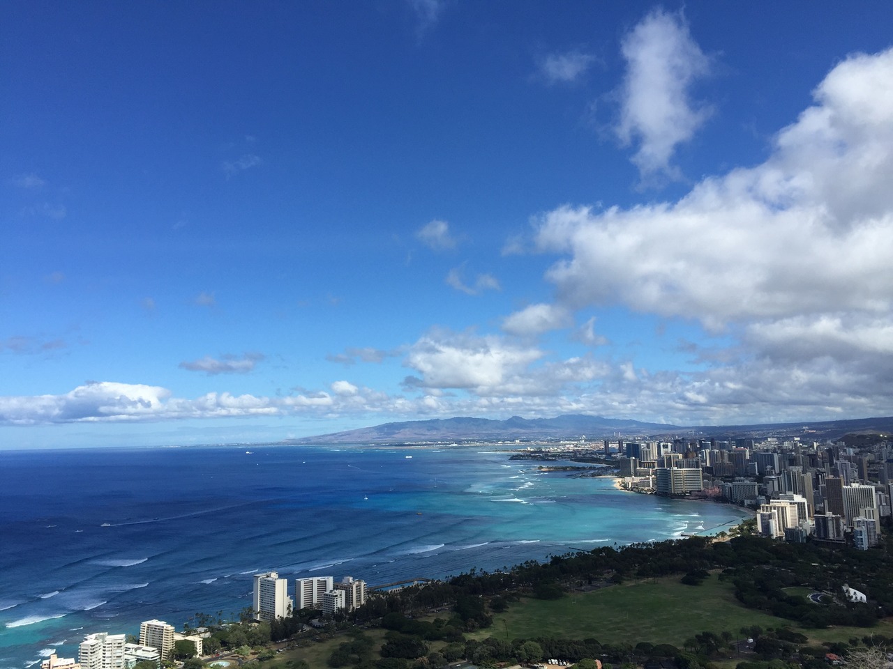 3回目のハワイで初めてダイヤモンドヘッド登山に行きました。ワイキキからはザバスに乗って確か15分ほど。入場料は1ドルくらいだったと思います。全体的に緩やかなので子供でも登れますがとにかく暑いです。飲み物とタオル持参をオススメします。