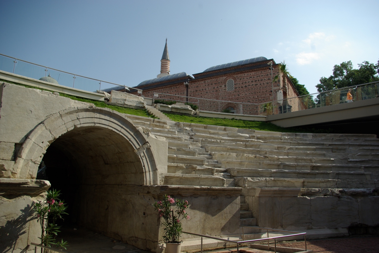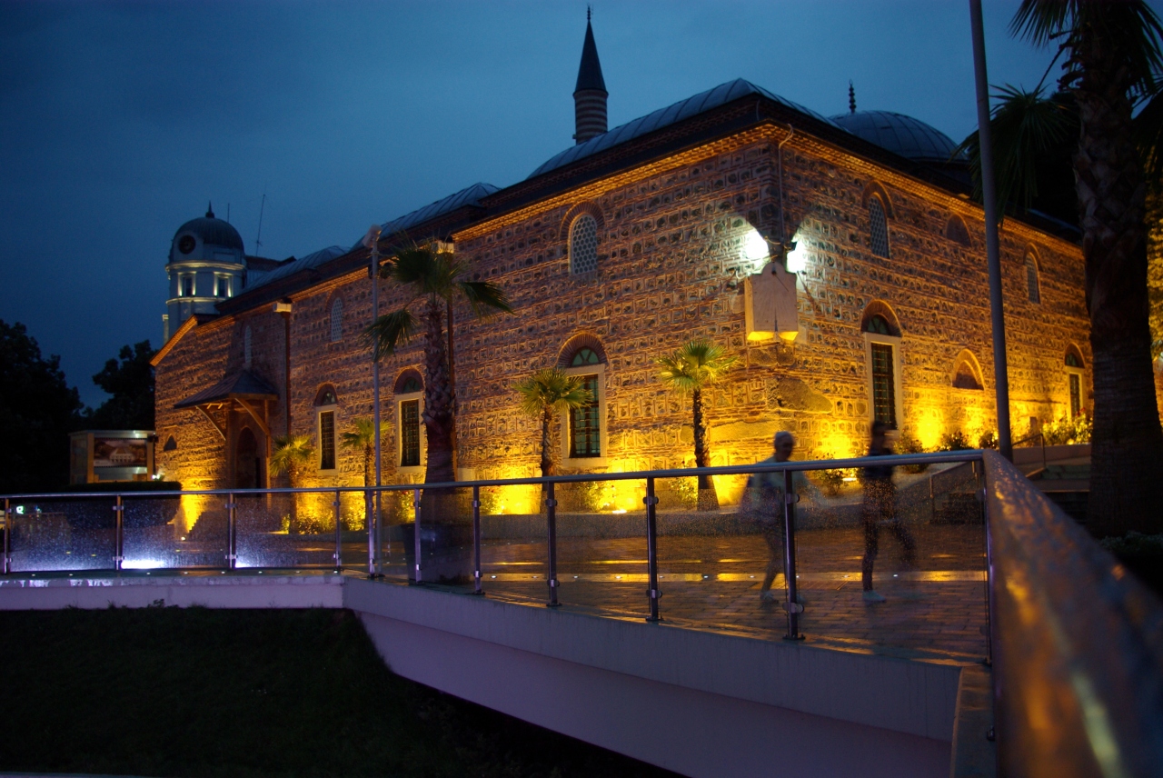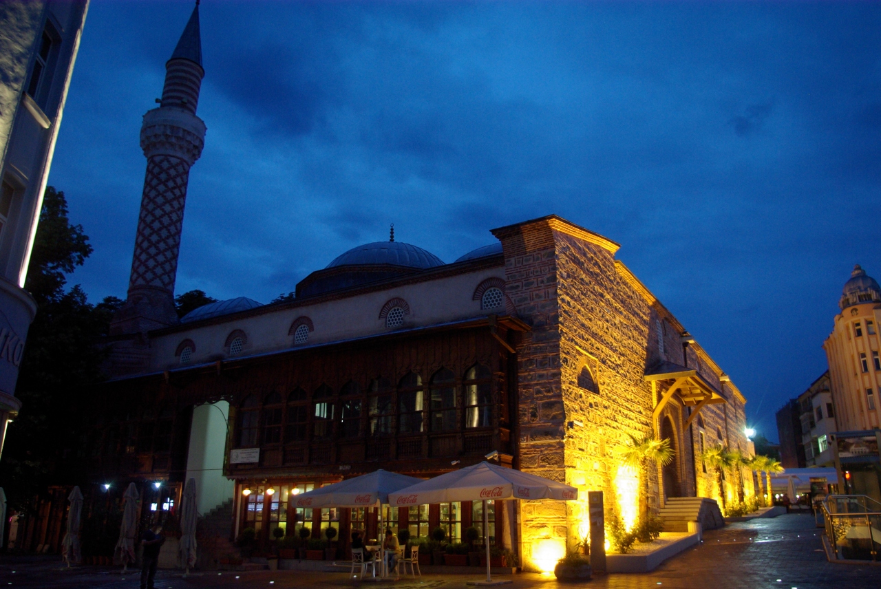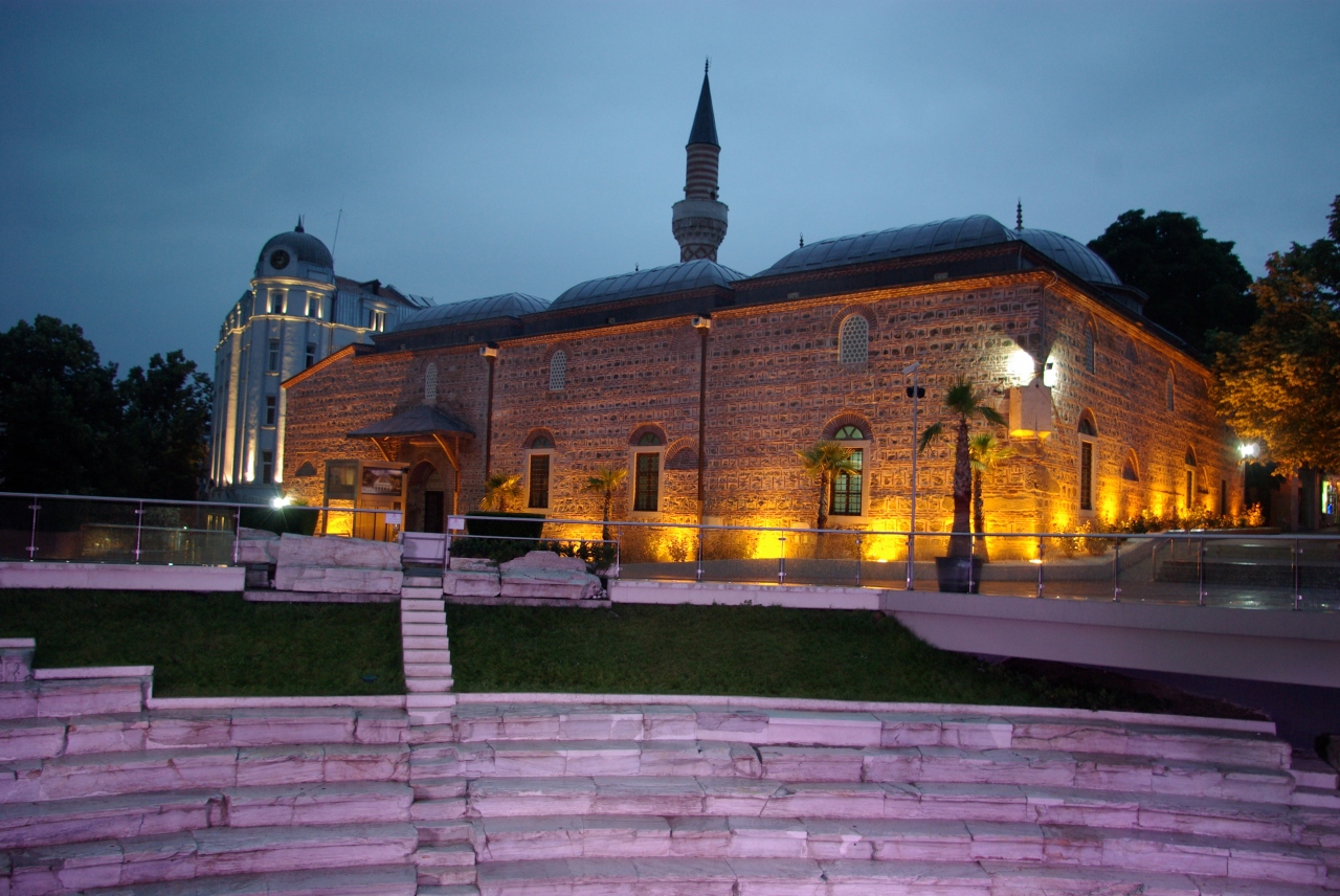 新市街の中心リムスキ・スタディオン広場に建つ、象徴的モスク。目の前の古代ローマ競技場の遺跡と好対照。入場はいつでもできるようですが、私が訪れた平日の朝9時半頃は、扉が閉まっていて入れませんでした。広場から向かって右側に無料の公衆トイレがあります。夜のライトアップは、とてもきれいです。