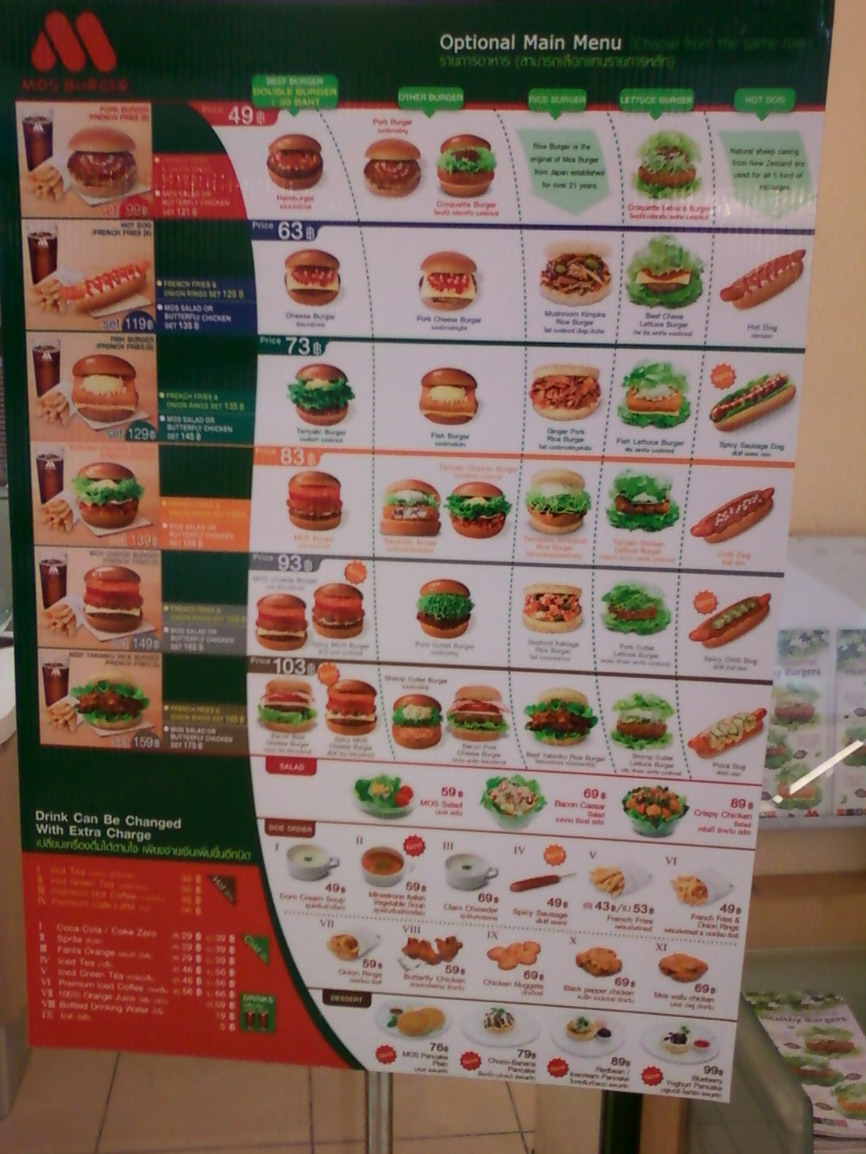 約一年ぶりに訪れたこのモスバーガー (チッドロム店)は、日本発祥のハンバーガー屋さんです。ライスバーガー(パンズの部分がライスでできたハンバーガー)を初めに売り出したことで有名で、日本人と同じ米食のタイ人にもうけているようでした。旅行中に辛いタイ料理に飽きたら、成れた日本の味が一番だと思いました。