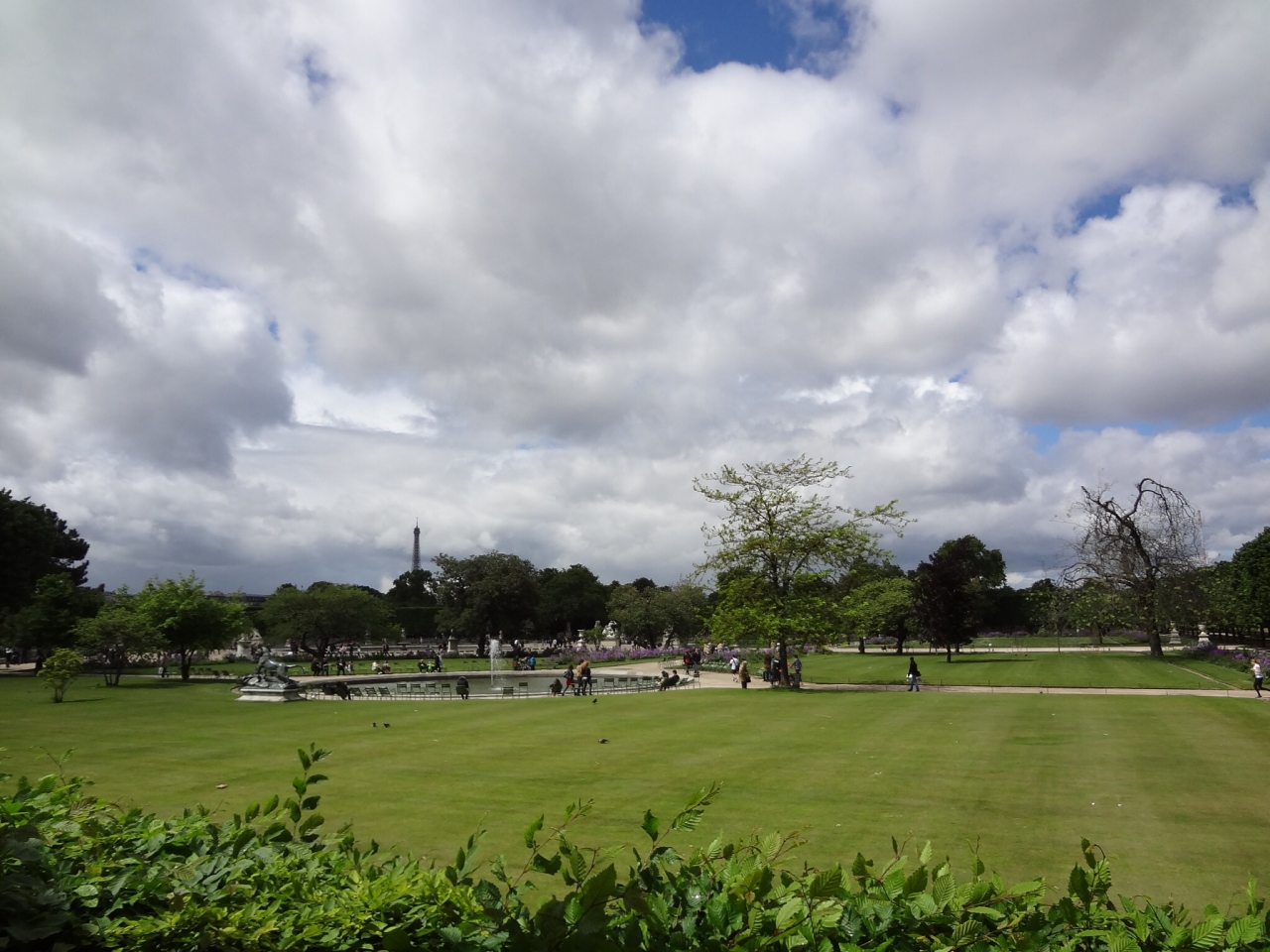 ルーブル美術館に面しており、パリのど真ん中の雰囲気満点の公園です。大きな噴水があり、噴水のまわりにベンチがあるので、日向ぼっこや日焼けをしている人がたくさんいました。マロニエの花が咲いており、とても素敵でした。