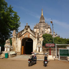 オールドバガンの城壁の中にあり、入口の通路の前には大きな日本で言う狛犬みたいなのがお出迎えしています。口もちゃんと開いたのと閉じたのが一対であって、これにはちょっとビックリでした。