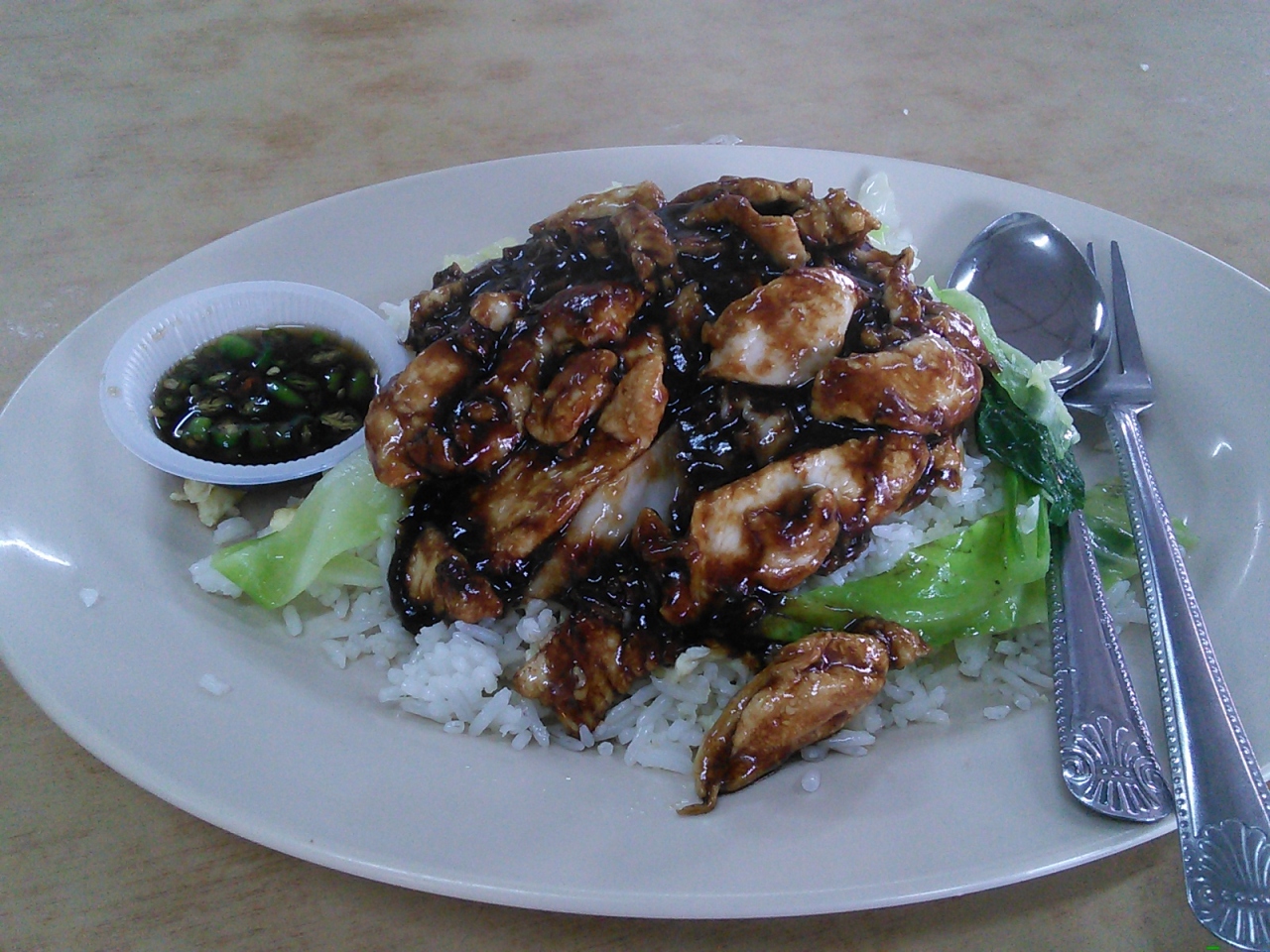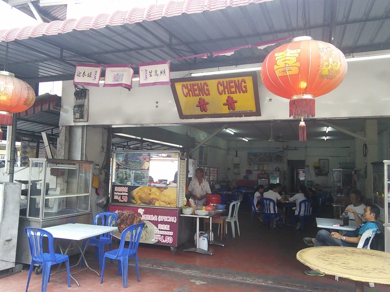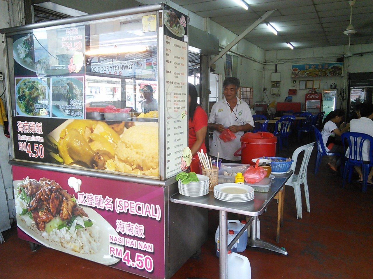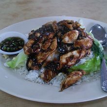 漢字表記は「青青」です。チャイナタウンの南の端辺りにあります。海南飯(Nasi Hainan)と写真付で大きく紹介されていたので店のイチオシかなと思いオーダー。海南鶏飯いわゆるチキンライスとは異なります。で、これが大当たり。鶏肉を味噌のようなオイスターソースのようなもので炒めており青菜が添えられていました。ボリュームもありとてもおいしかったです。これで4.5RM。周りを見るとこれを食べている人が大勢いました。やはり店の看板メニューのようでした。