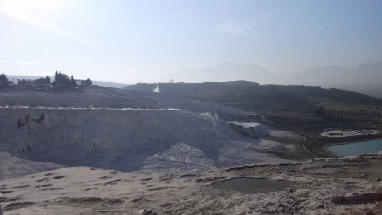 ガイドさん言うには、温泉ホテルが、どんどん出来て、大量のお湯を供給するので、石灰棚のお湯が、減ってきたそうです。 それで、調節して、時間を決めて、定期的に流しているそうです。