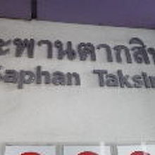 BTSのサパーンタクシン駅、逃亡中のタクシン元首相と関係あるかは知りませんが、観光で使うチャオプラヤエクスプレスのボート乗り場であり。
