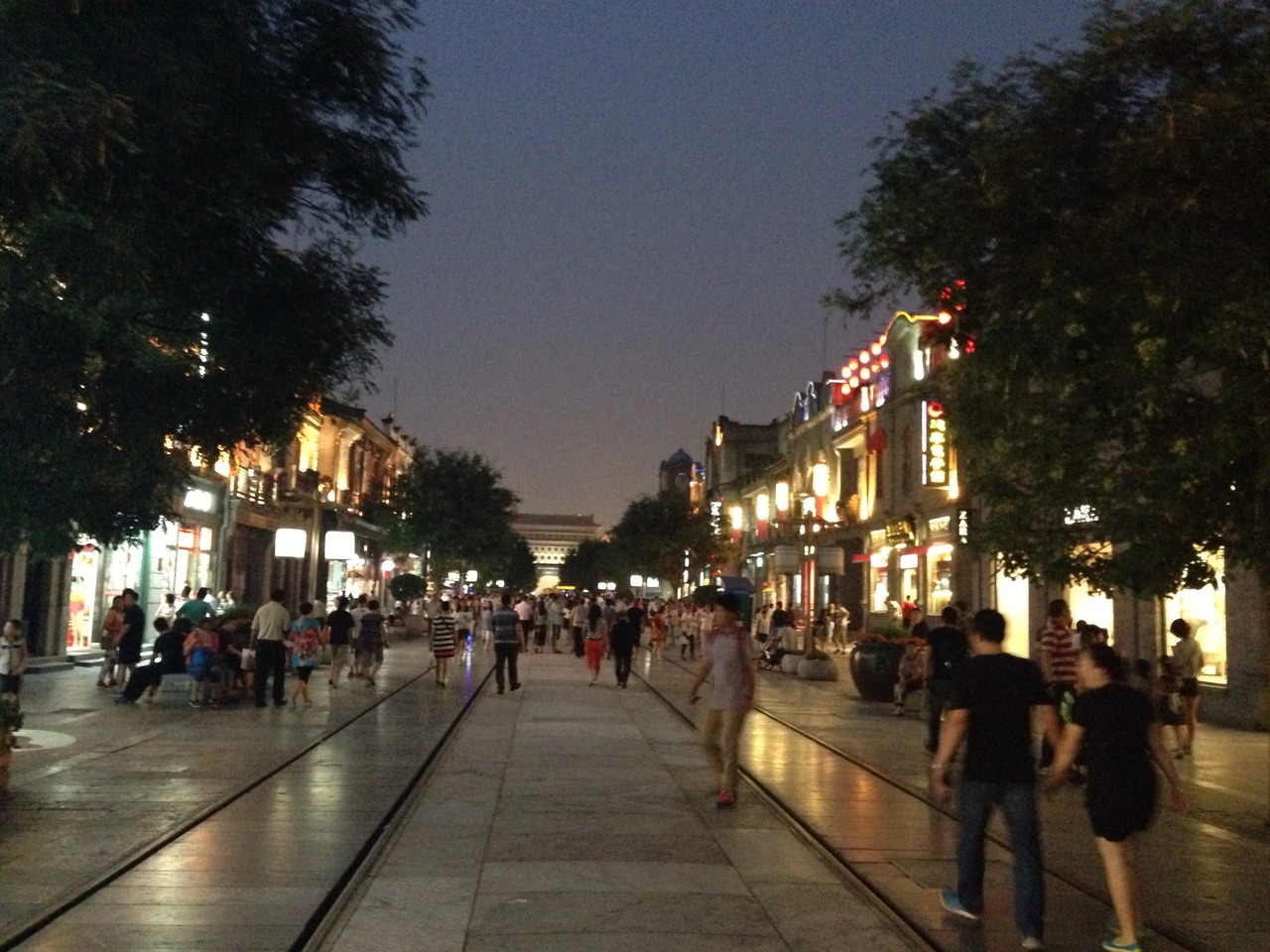 通りには都一処や北京ダックの全聚徳、老北京ジージャン麺など有名なお店が並び、中国らしいお土産も売っています。店舗は新しいものも多いですが、建物は古い中国らしいものが多くおもしろいです。歩行者天国になっていて歩きやすいですし、ご飯を食べたりお土産を見たりするにはよいと思います。ただ、飲み屋やバーは見当たらず、お店は比較的早く閉まり始めるので、遅くまでぶらぶらしたい方には后海エリアの方まで行かれることをお勧めします。