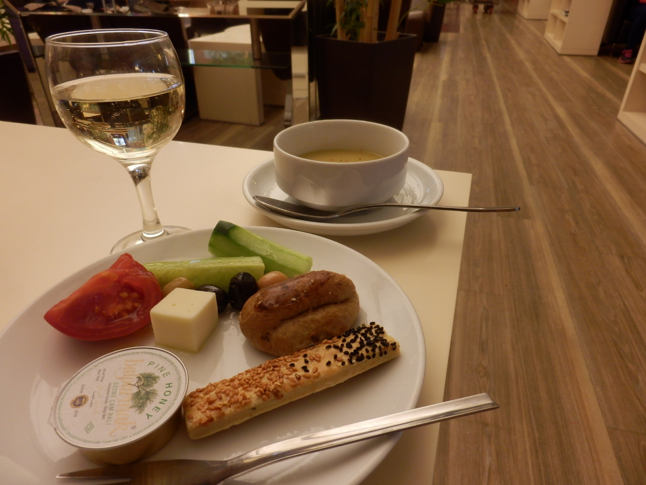 プライオリティパスが使用出来るラウンジです。場所は国際線ターミナルのフードコート横のエスカレーターから2階へ上がってすぐの場所です。ラウンジの奥はガラス張りになっていて、ターミナルのショッピングゾーンを上から見下ろせました。あまり広くないですが、ゆったりしたソファやテーブル席、カウンターがありました。早朝に利用したため、食事類はパンやサンドイッチ、スープぐらいしか無かった点が残念でした。朝6時を過ぎると、急に混み合ってきて、椅子に座れず、カウンターにもたれ掛かってドリンクを飲んでいる人もいました。また、トイレが男女1つずつしかないため、混んでいるときはラウンジの外のトイレを利用しました。