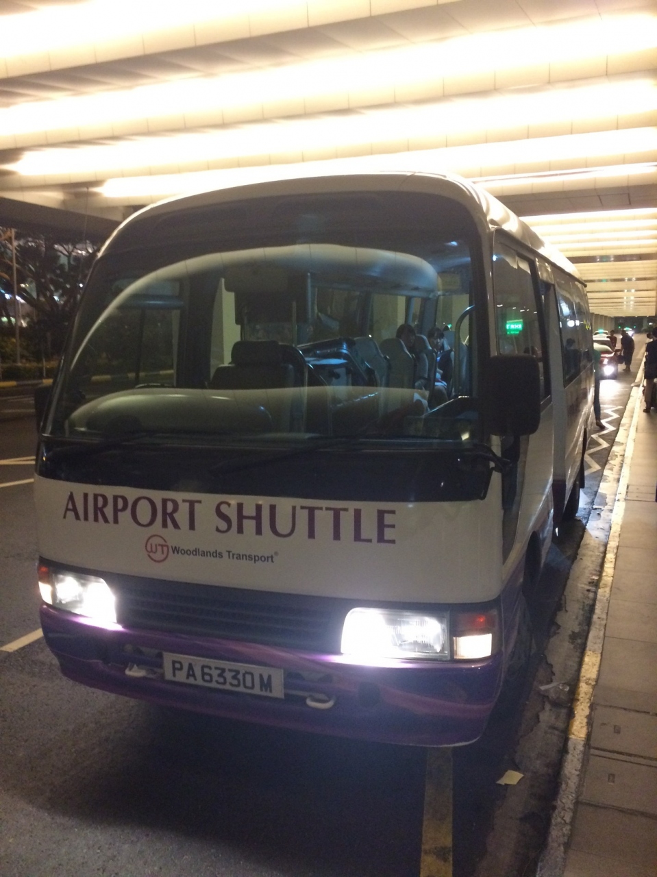深夜に到着したのでタクシーとシャトルバスの2択しかなく、タクシーは深夜割り増しもあるので値段の安い(9S$)シャトルバスにしました。受付は到着ロビーのグランドトランスポートデスクです。料金を支払ってシールを胸に貼りますが、ホテルが書かれたレシートを運転手に見せる必要があります。私の場合はタイミングが悪くバスが来るまで30分ほど待たされました。さらに乗り合わせた4組のうち、私のホテルが一番近かったのですが、最初にマリーナ・ベイ・サンズへ行きその後オーチャードを廻って空港へ戻る途中で私のホテルへやっと到着です。えらく遠回りになり時間もかかってしまいました。どのくらい時間がかかるかは運次第ですね。サンズに泊まっていたらもう少し星をあげていたでしょうが。。。