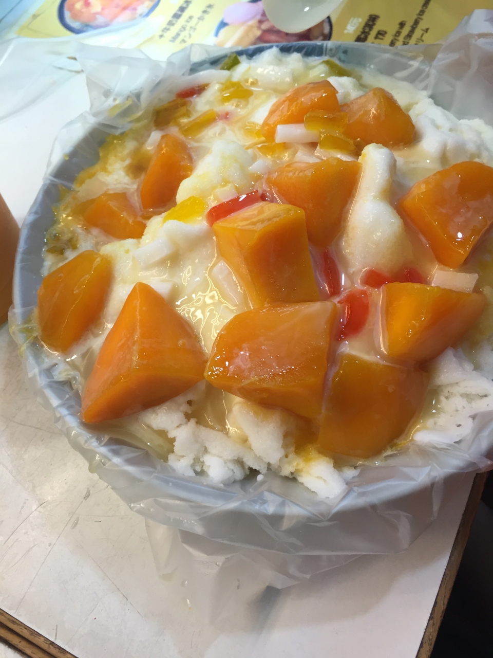 薬膳排骨スープのブースの隣にあるカギ氷ブースだけど、マンゴーカギ氷を頼んでいて、カラフルのゼリーがトッピングして、甘すぎて、まずかったです。カットマンゴーはグ~だけど、雪花氷も溶けかけてるし、トッピングゼリーは染色しており、気持ち悪い。もう二度ありません。