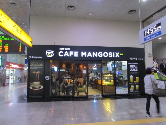 以前海雲台でマンゴースムージーを飲んで、おいしかったなぁ~~という記憶があり、釜山駅にもあったんだ・・・とちょっとうれしかったです。