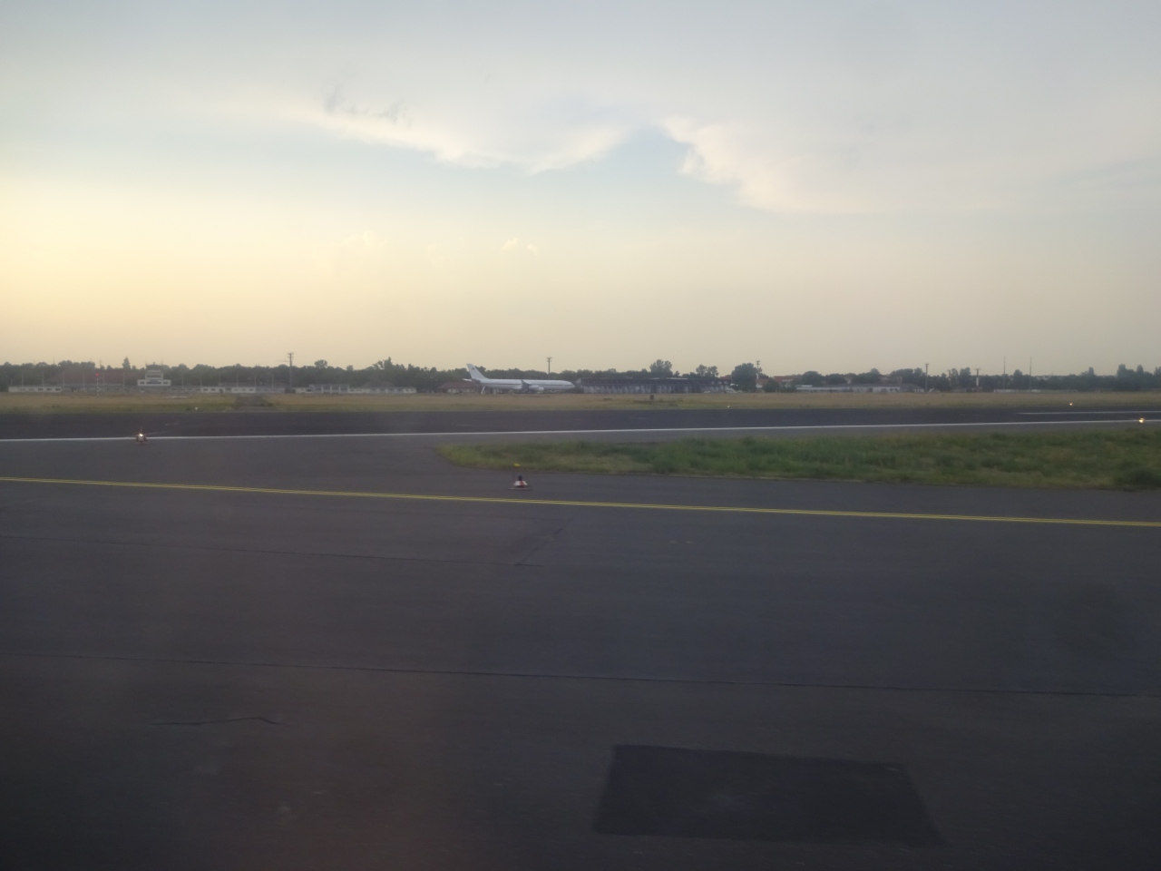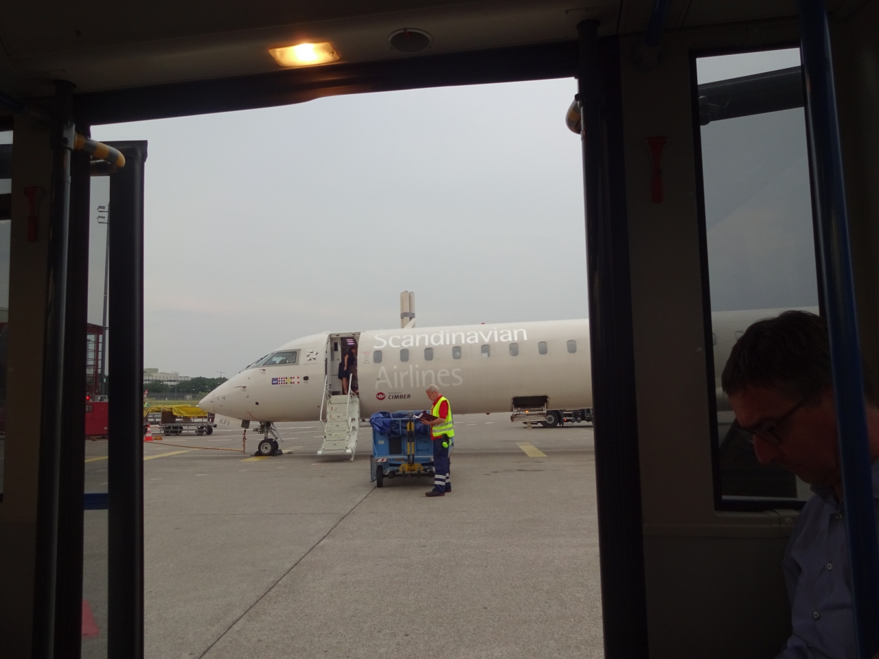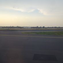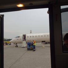 小型の飛行機だったので空港の端っこの方についたようで、バスでの移動。