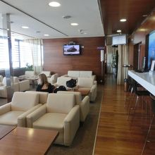 ラウンジは2つに分かれ、手前には軽食コーナーのあるエリア