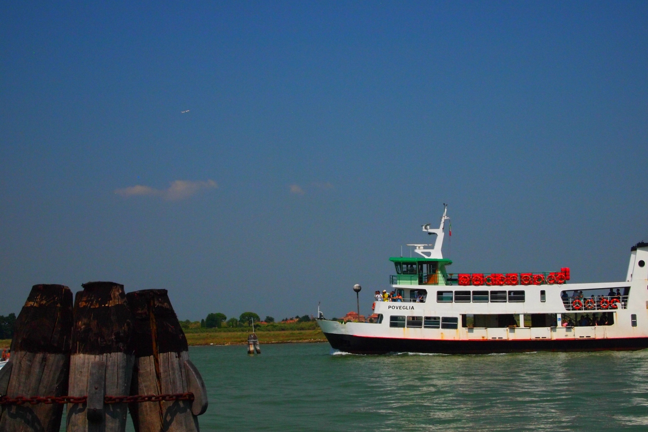 7月の週末、駅前からブラーノ島やムラーノ島、サンマルコ方面へ移動するヴァポレットはどれもギュウギュウ詰め。待ち人も多いとムラーノ島行きはFerrovia AからCORONNAまで直通の臨時便が出ました(時刻表にない便だからおかしいなと思い、状況から後で臨時だったとわかりました)。「ブラーノ島に行く人もこれに乗って」と言われ乗ってCORONNAまできましたが、ブラーノ行は別の停留所、FAROからしか出ない!?それに気づけたのも、ヴァポレットのルートマップを持っていたおかげ。またブラーノ島は本島から遠いし本数も限られるので、時刻表も役立ちました。1時間に1本の「ブラーノからサンマルコ行き」に乗りましたが、たまたまフェリーでした。ヴァポレットよりゆったりでき、風も心地よく快適でした。