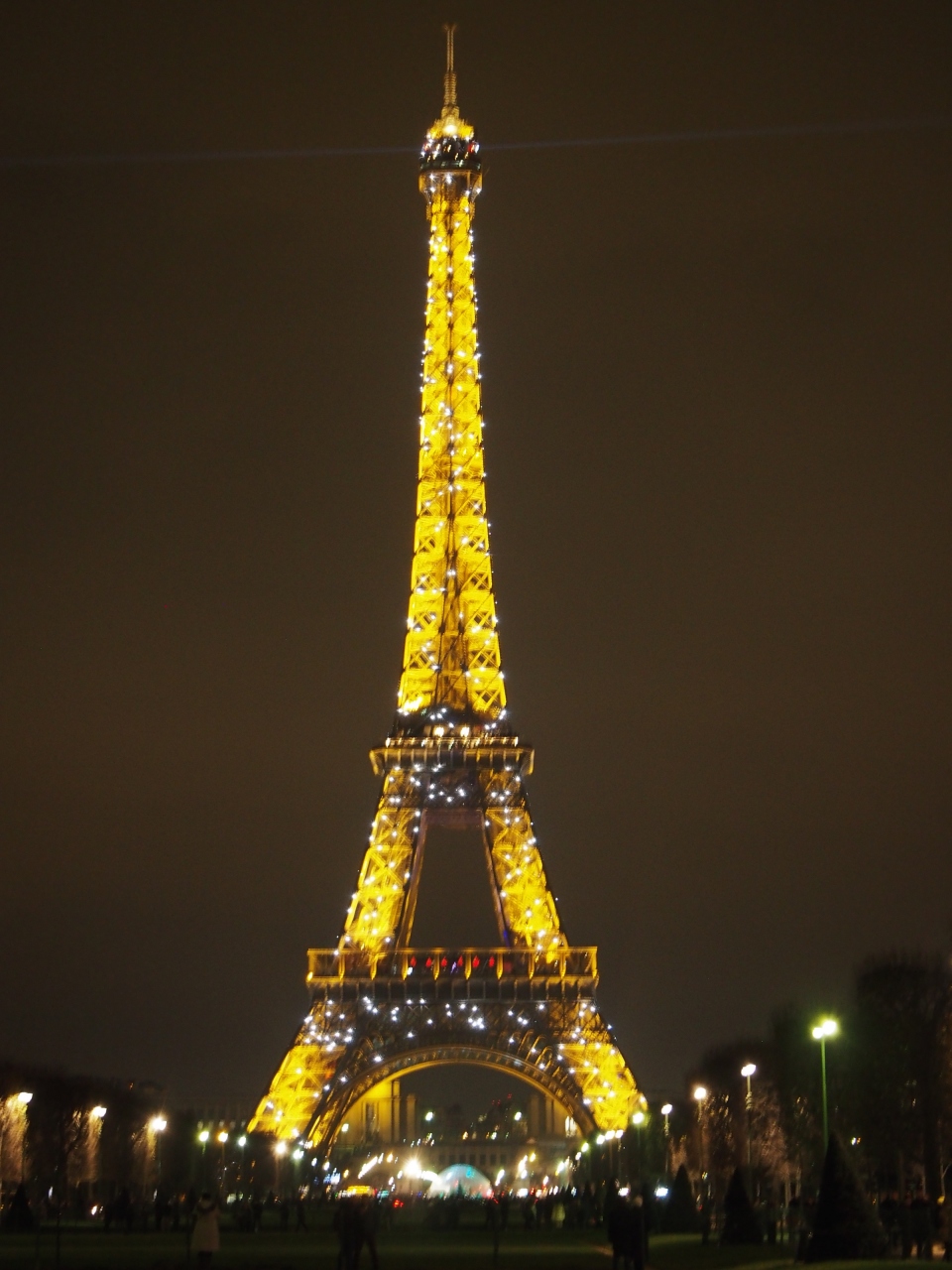 日中、トロカデロ広場から青空の中のエッフェル塔を、夜はシャンドマルス公園からライトアップしたエッフェル塔を見ました。